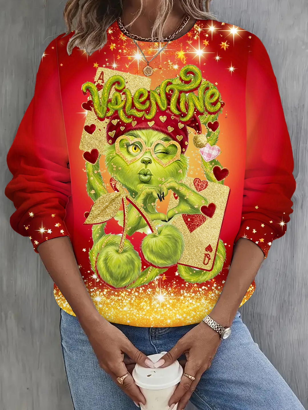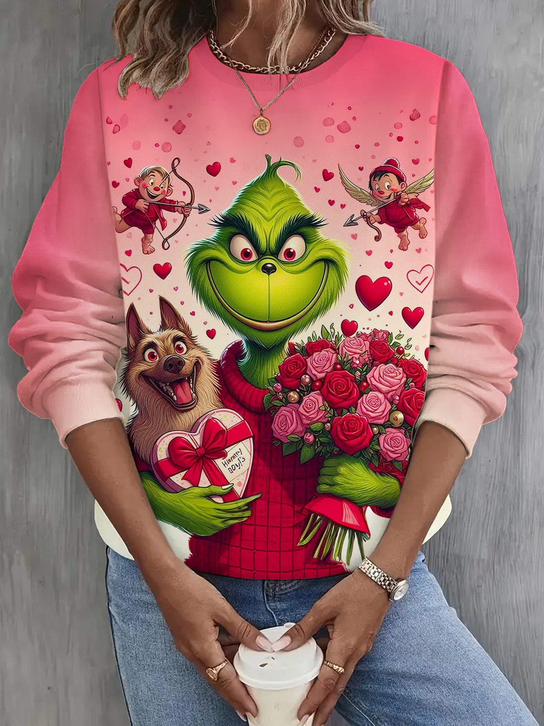 Fun Valentine Grinch And Dog Long Sleeve Casual Top