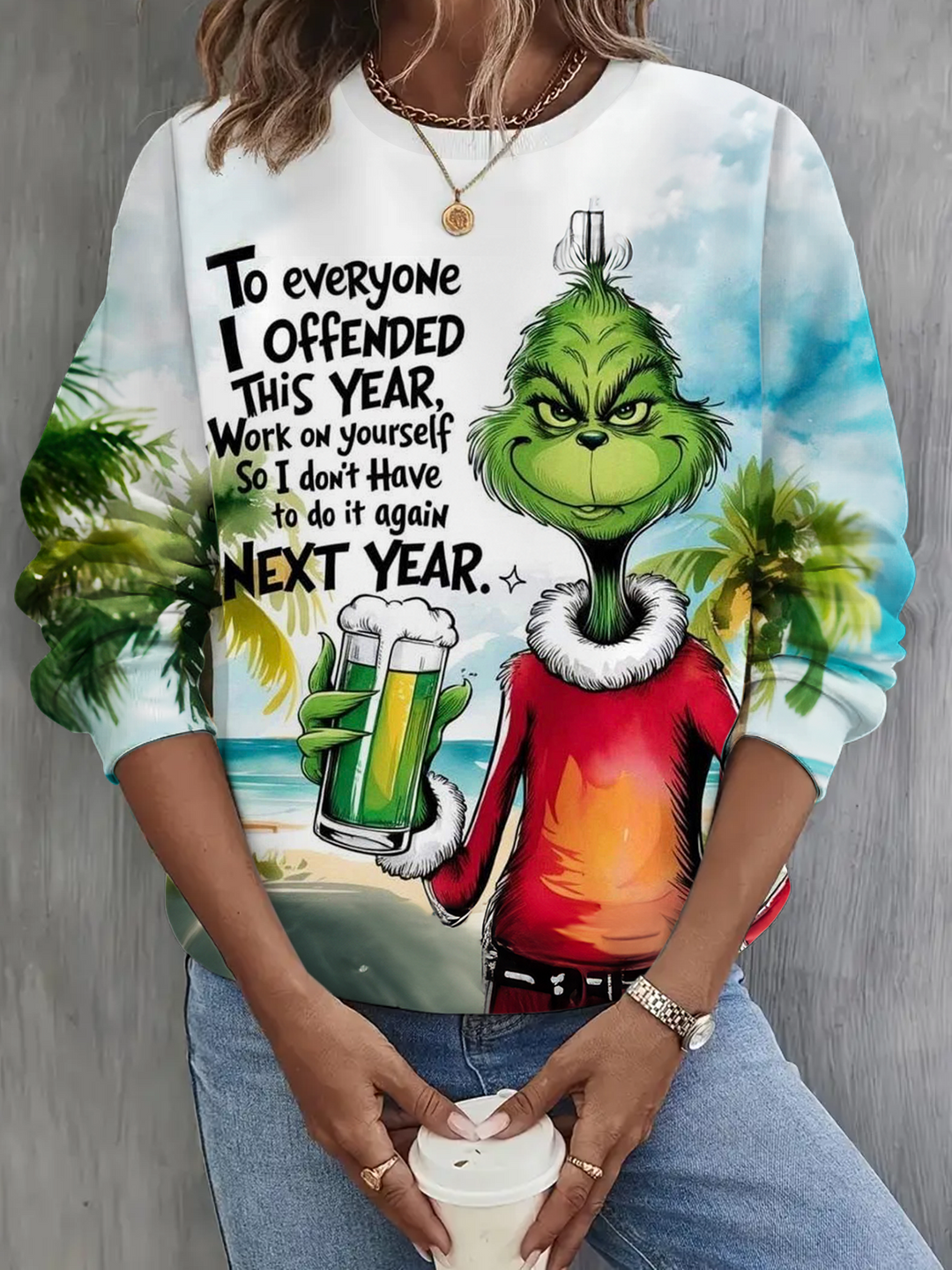 Grinch To Everyone Offended This Year Work On Yourself Long Sleeve Casual Top