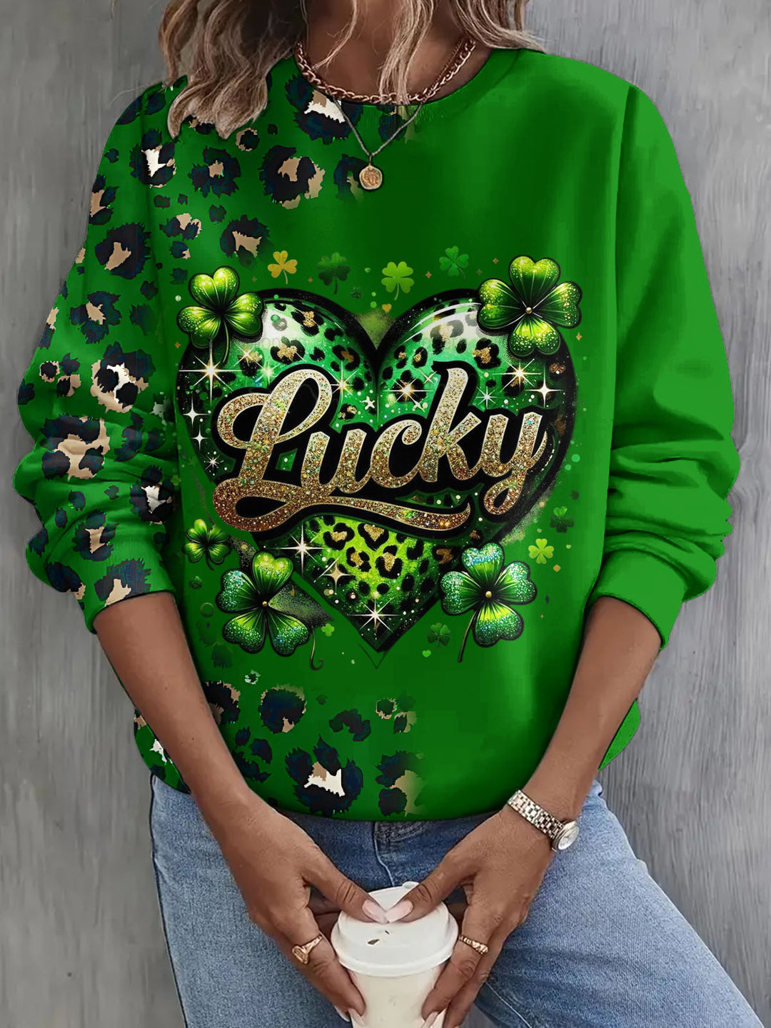 St.Patrick's Day Leopard Pattern Love Long Sleeve Casual Top