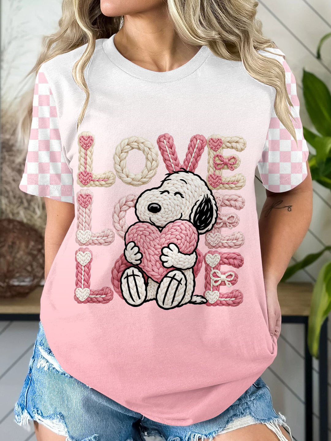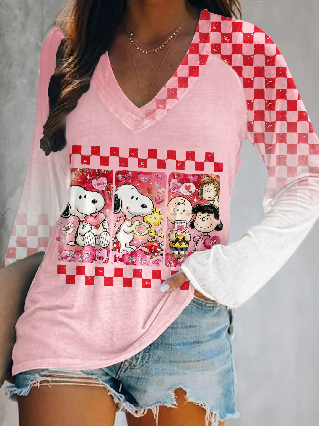 Valentine's Day Snoopy Printed Long Sleeve Casual Top