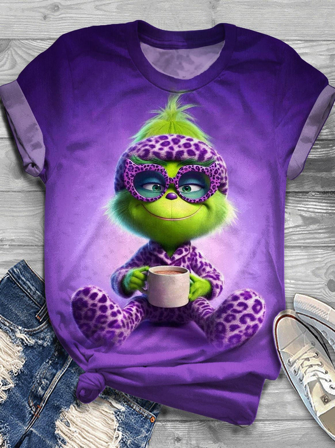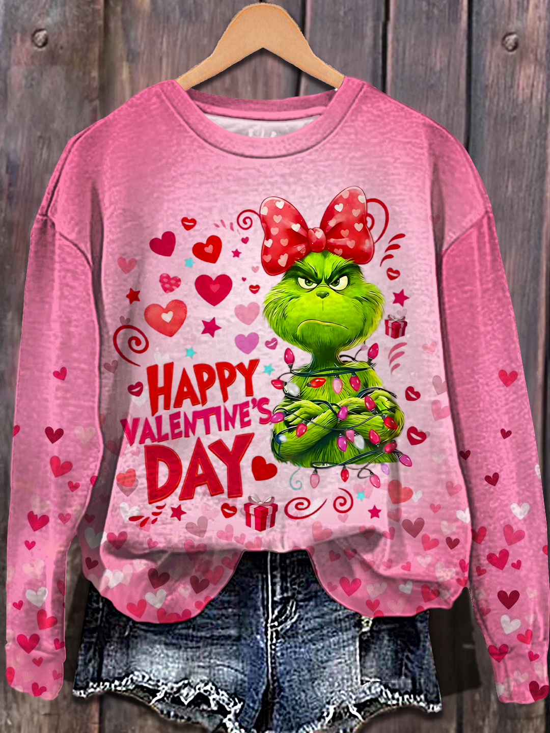 Grinch Heart Printed Long Sleeve Casual Top
