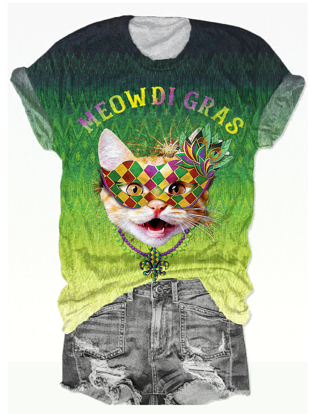 Mardi Gras Fun Cat Crew Neck T-shirt