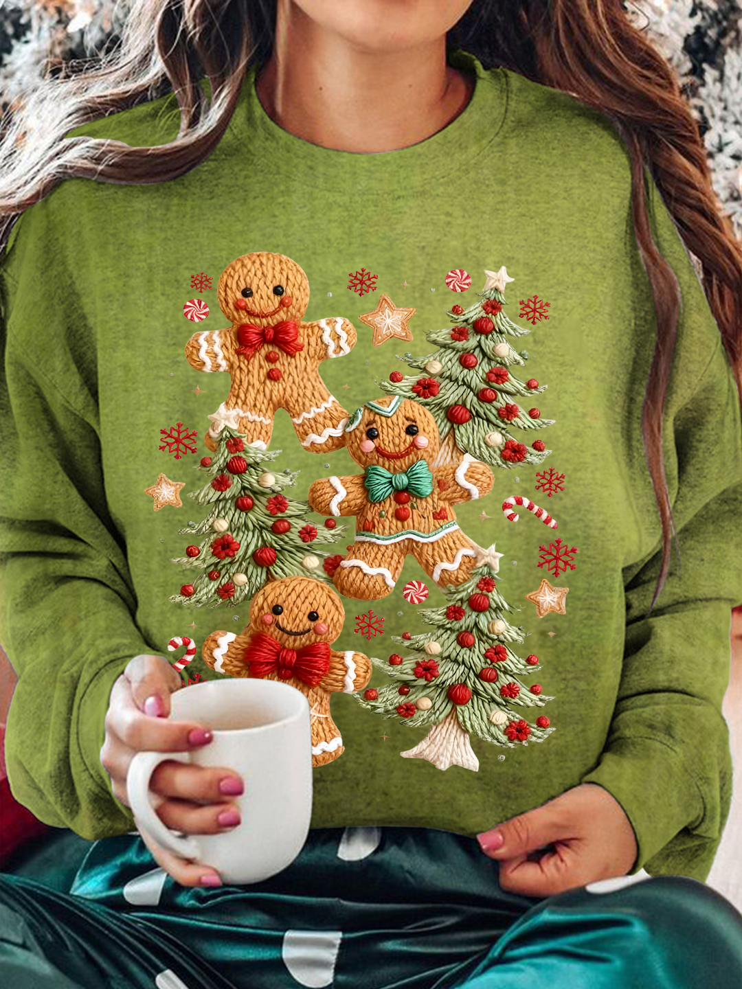 Faux Yarn Funny Gingerbread Christmas Long Sleeve Casual Top