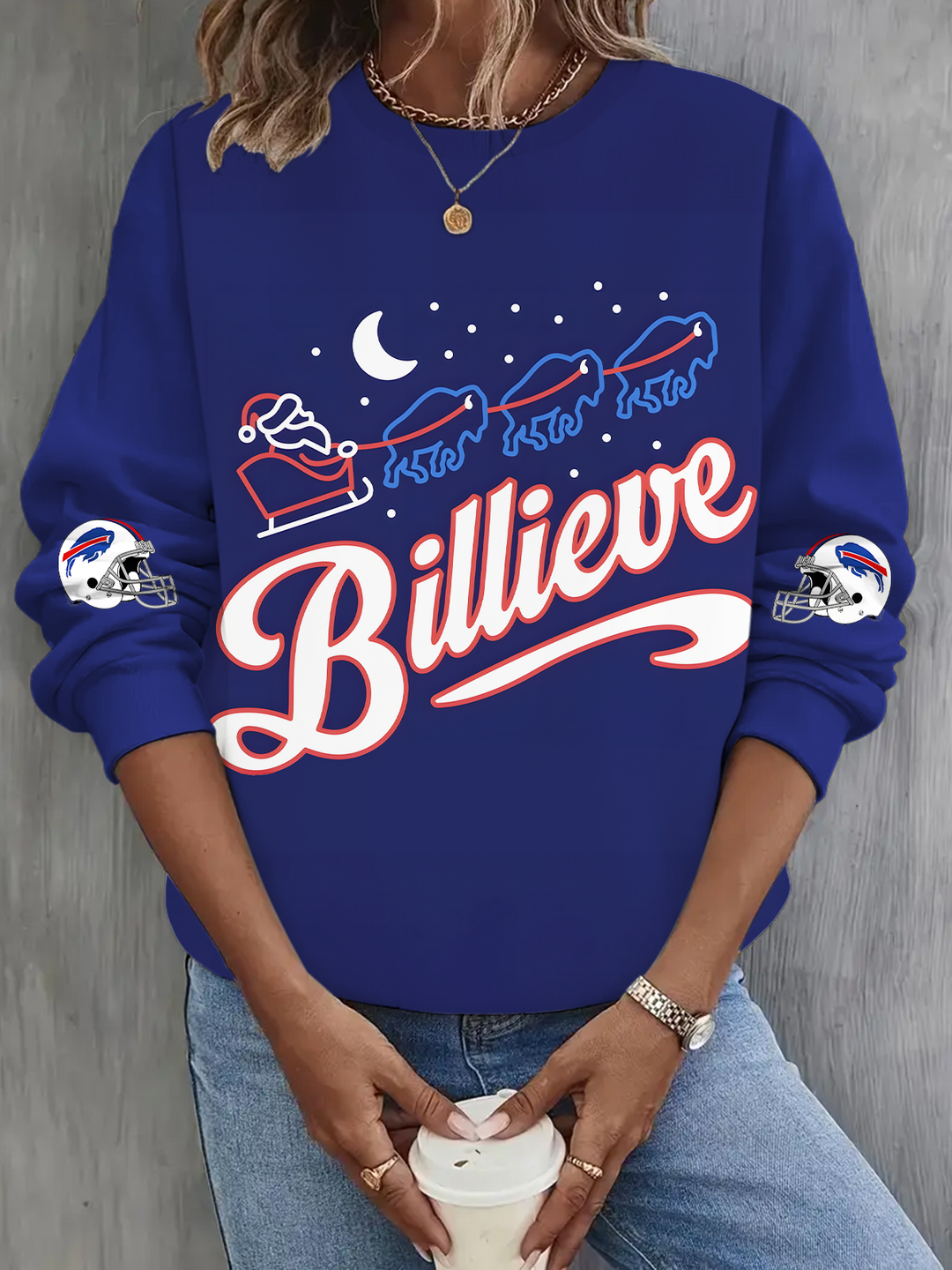 Billieve Christmas Eve Santa Claus BuffaloLong Sleeve Casual Top