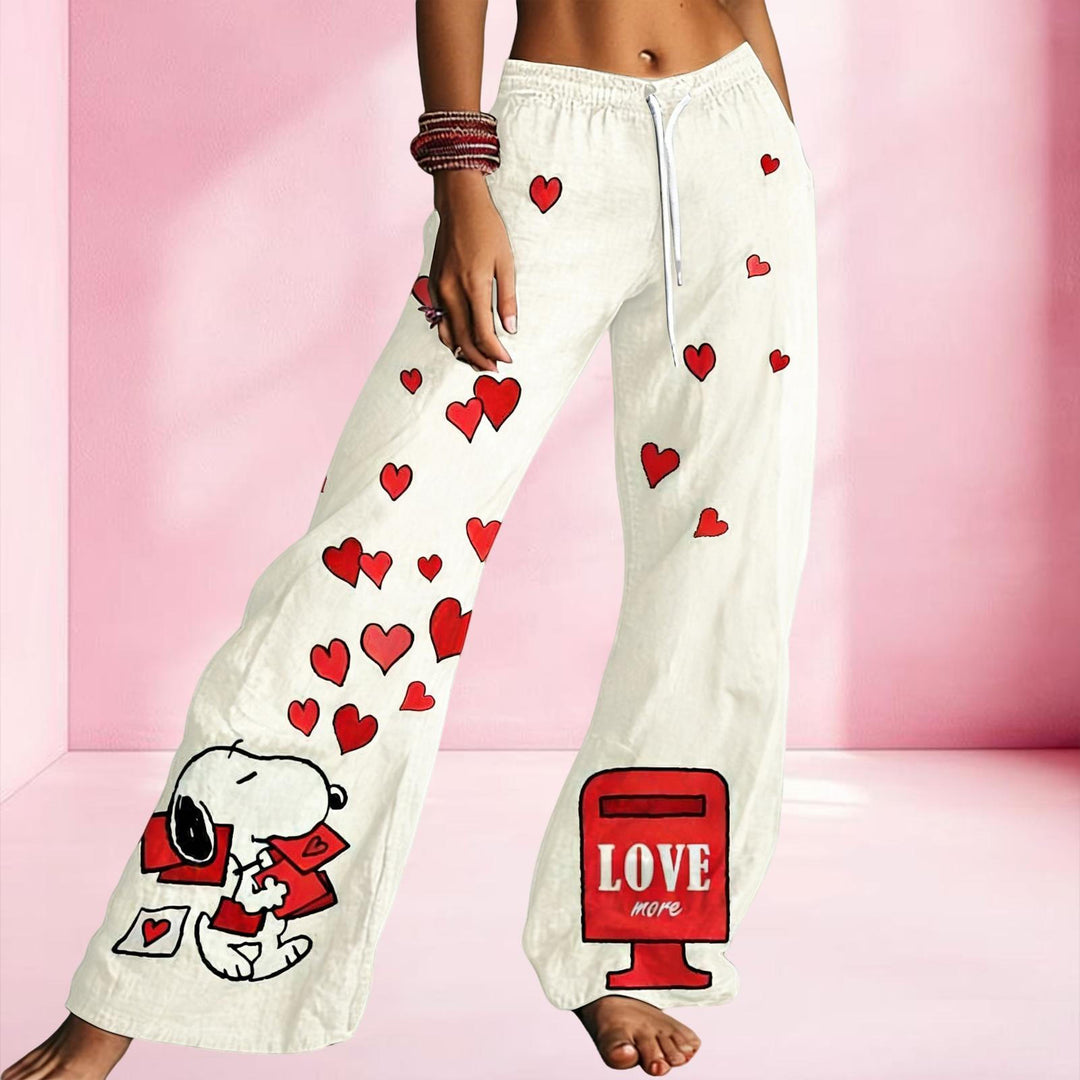 Snoopy Love Envelope Women's Drawstring Wide-Leg Pants