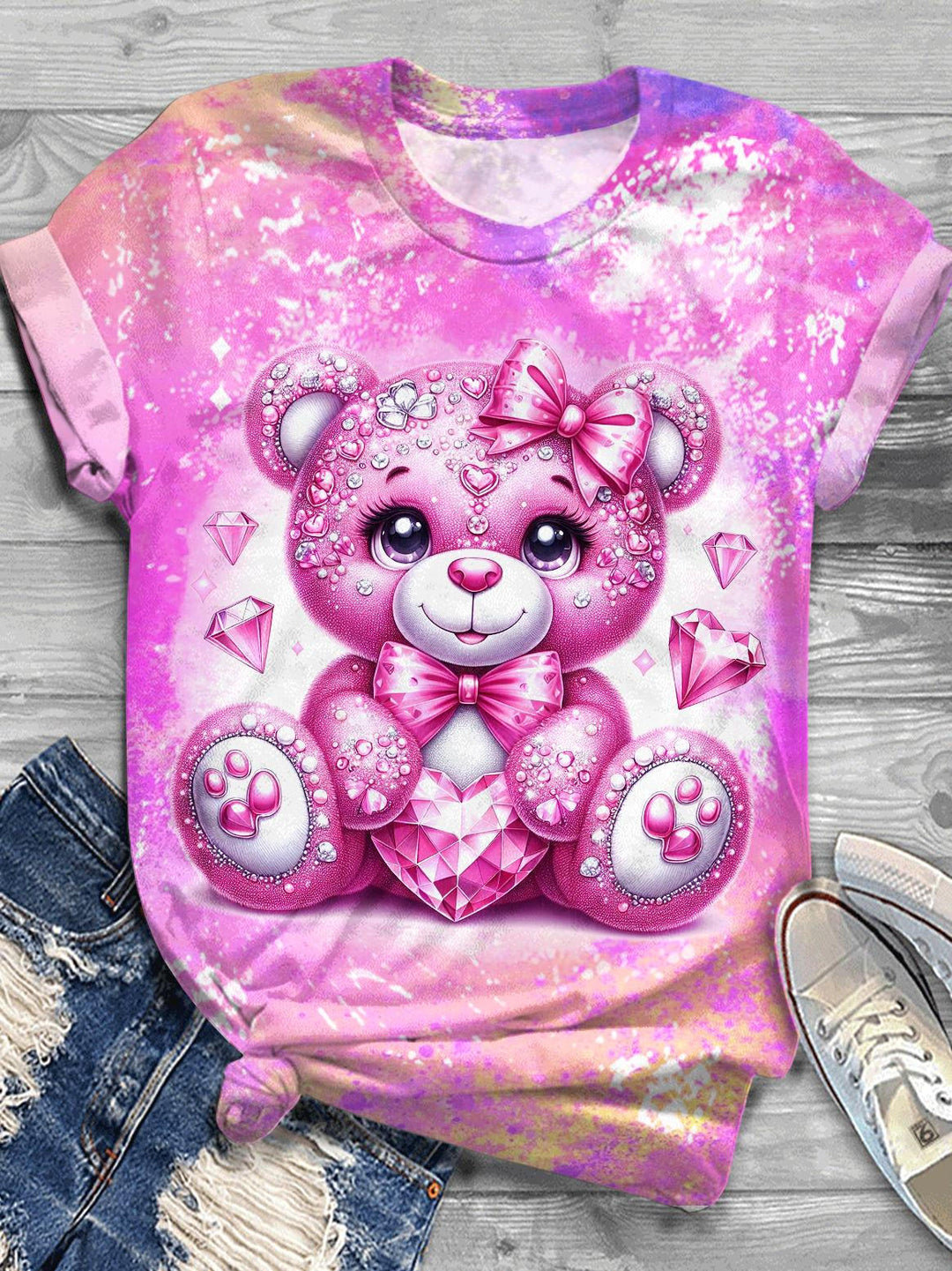 Valentine's Day Love Bear Print Crew Neck T-shirt