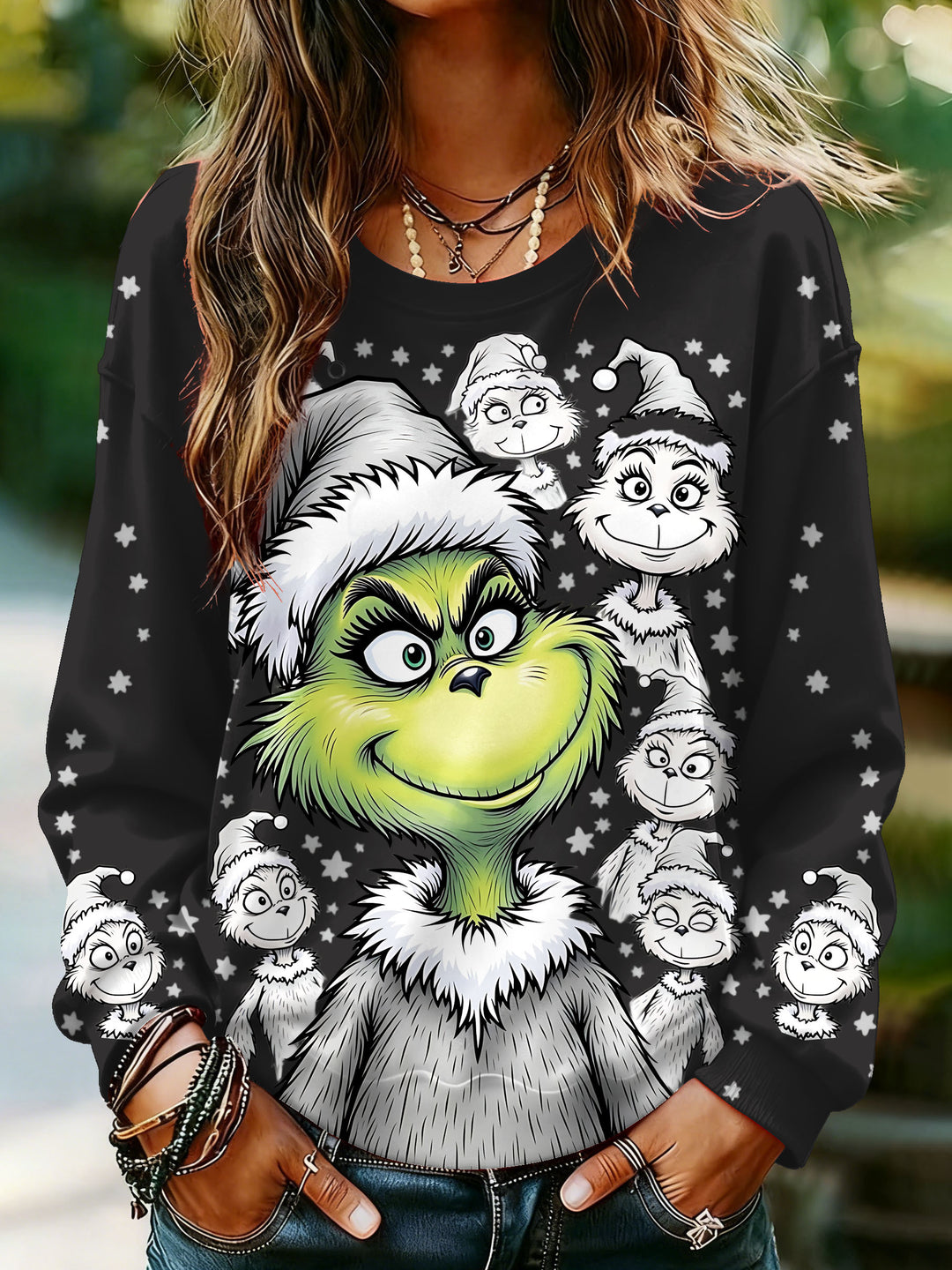 Retro Valentine's Day Grinch Printed Long Sleeve Casual Top