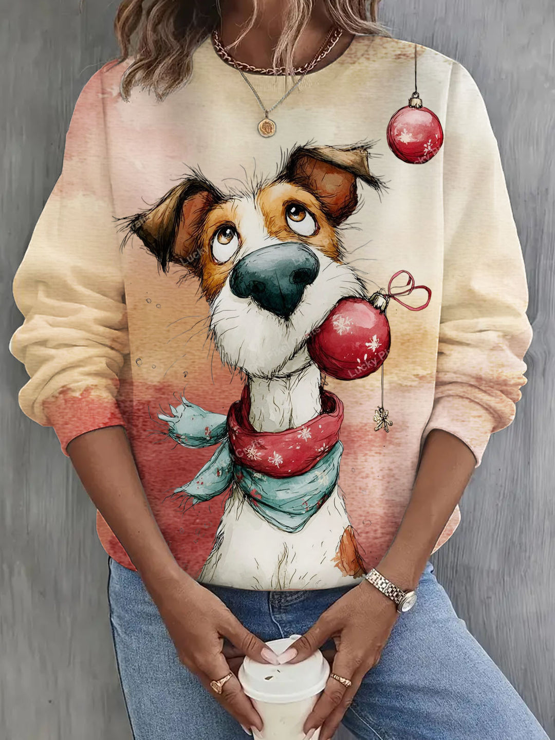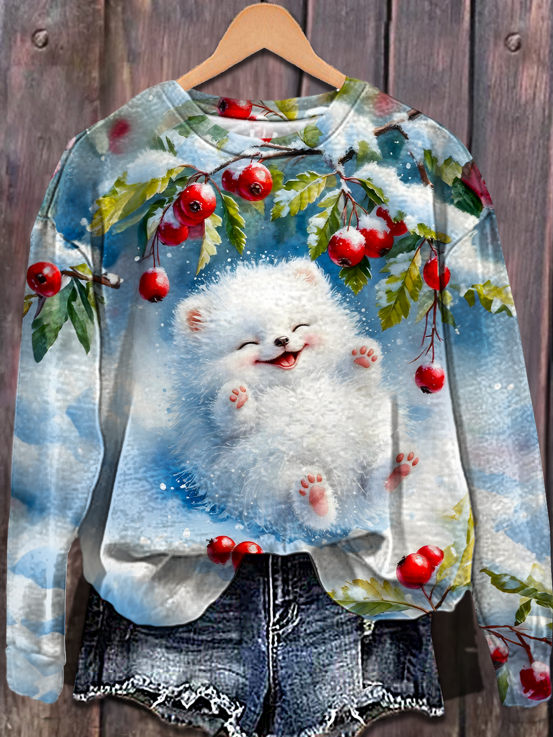 Happy Winter Snowy Day Puppy Printed Long Sleeve Casual Top