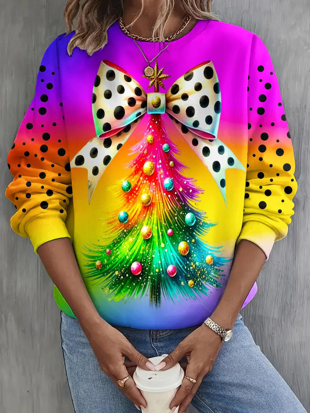 Christmas Rainbow Christmas Tree Long Sleeve Casual Top