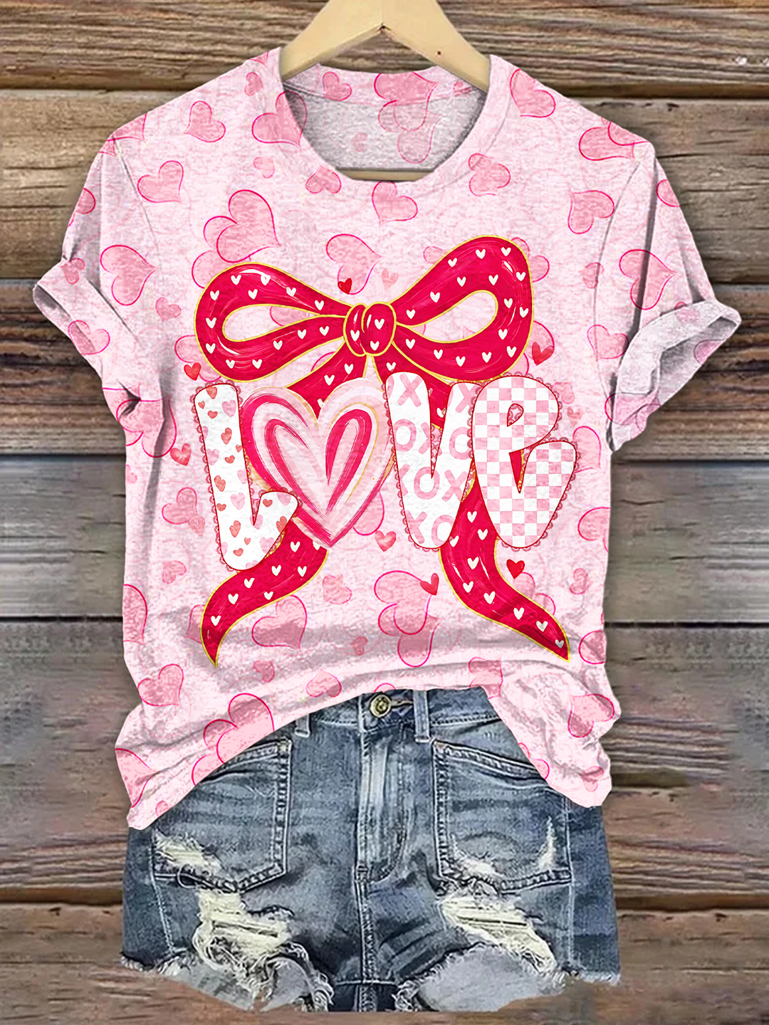 Valentine's Day Heart Print Crew Neck T-shirt