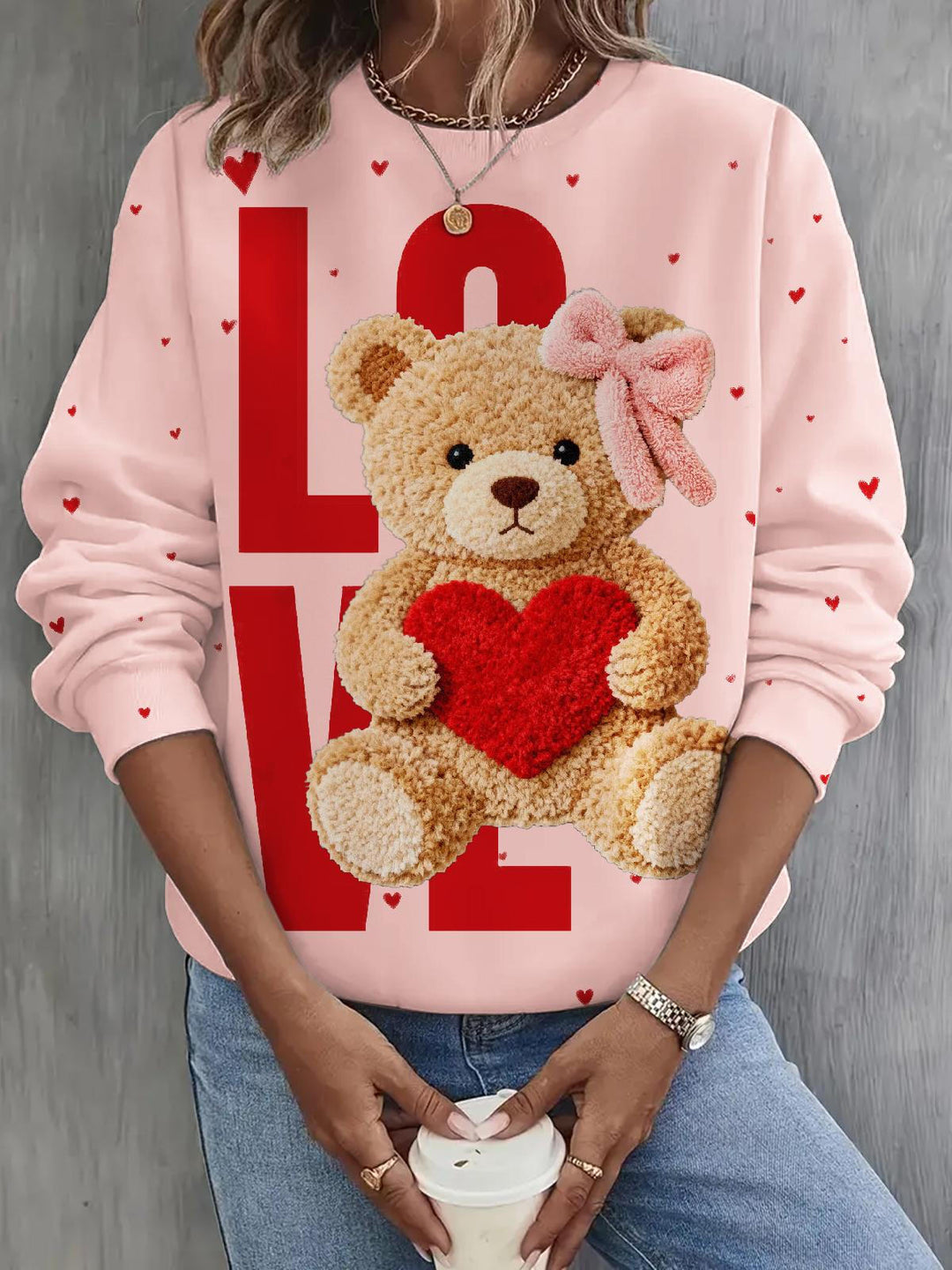Valentine's Day Puppet Bear Long Sleeve Casual Top