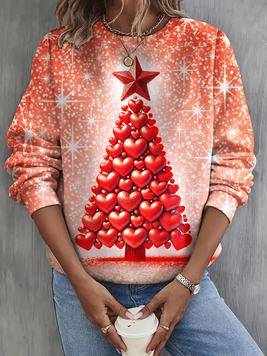Valentine's Day Heart-Shaped Christmas Tree Long Sleeve Casual Top