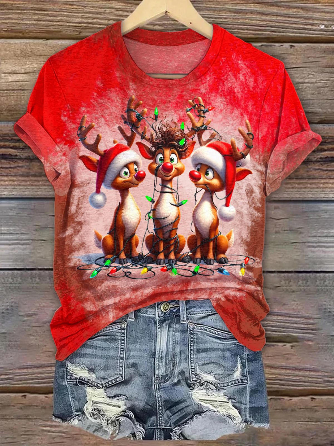 Christmas Reindeer Print Crew Neck T-shirt