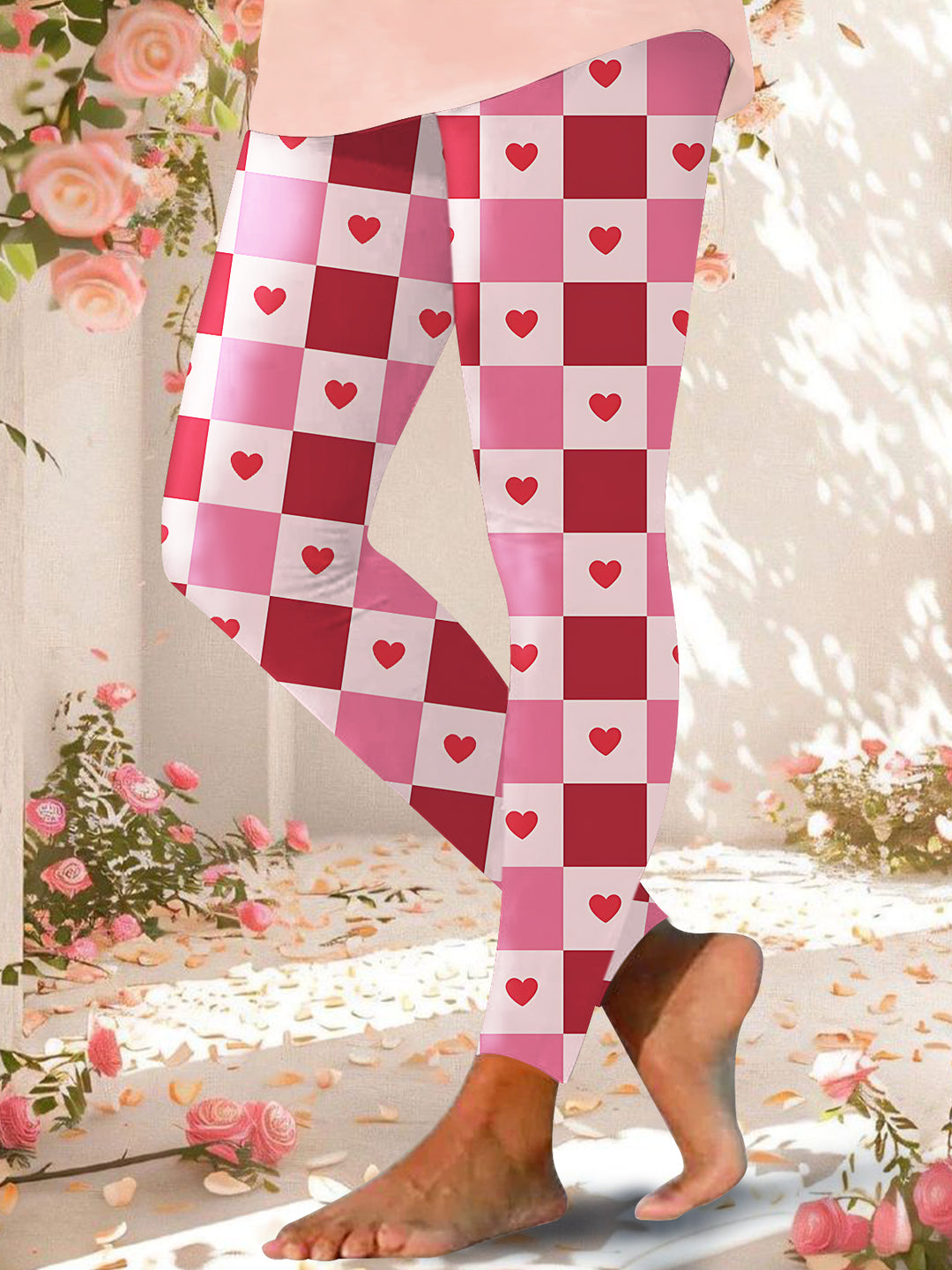 Valentine's Day Love Grid Print Leggings