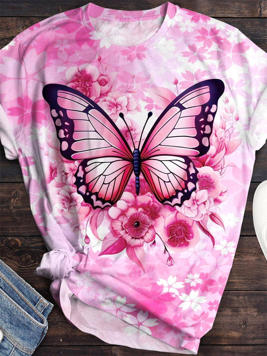 Valentine's Day Holiday Butterfly Crew Neck T-shirt