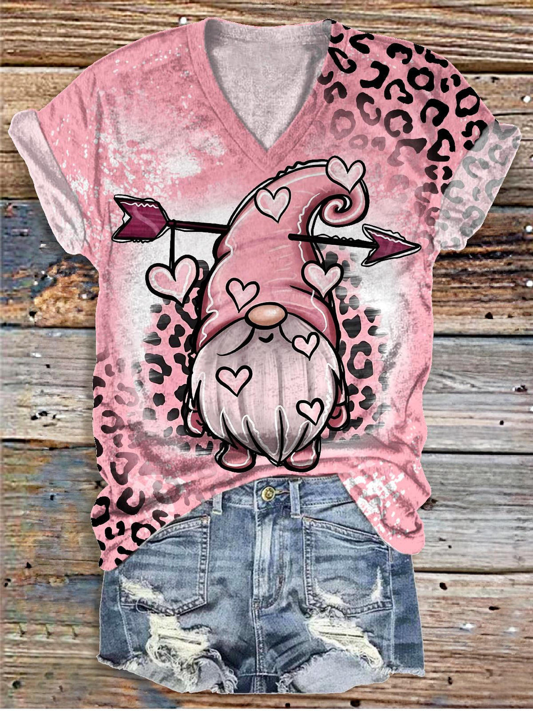Valentine's Day Leopard Dwarf V-neck T-Shirt
