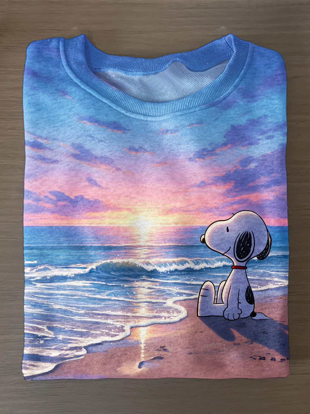 Snoopy at the Beach Sunset Printed Long Sleeve Casual Top