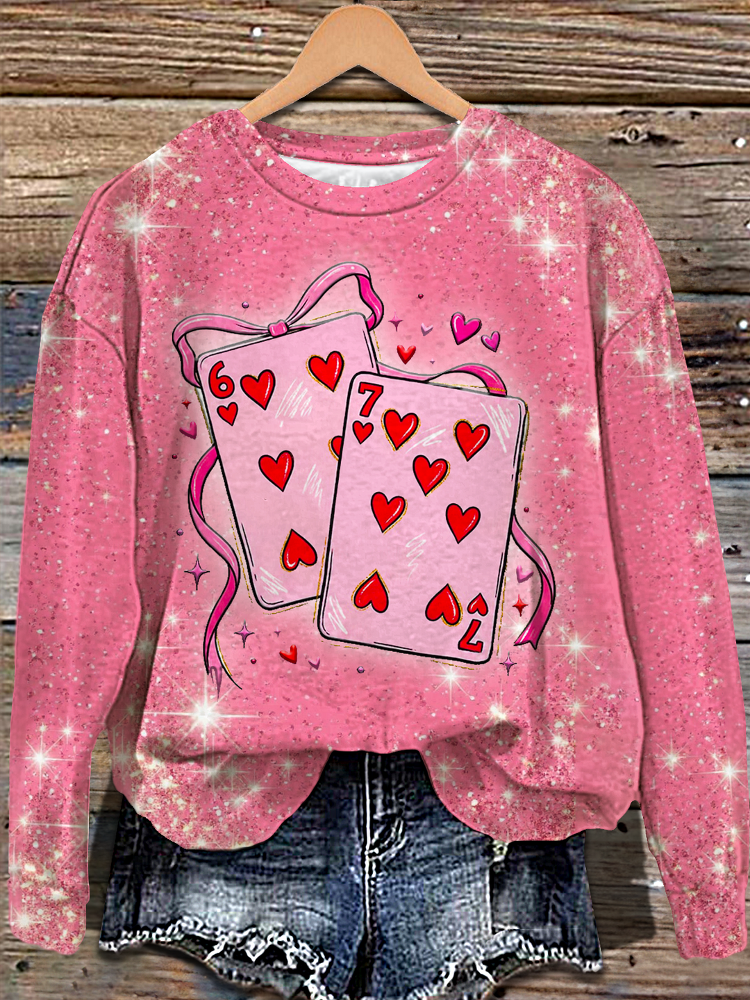 Playing Cards Valentine 6 7 Printed Long Sleeve Casual Top