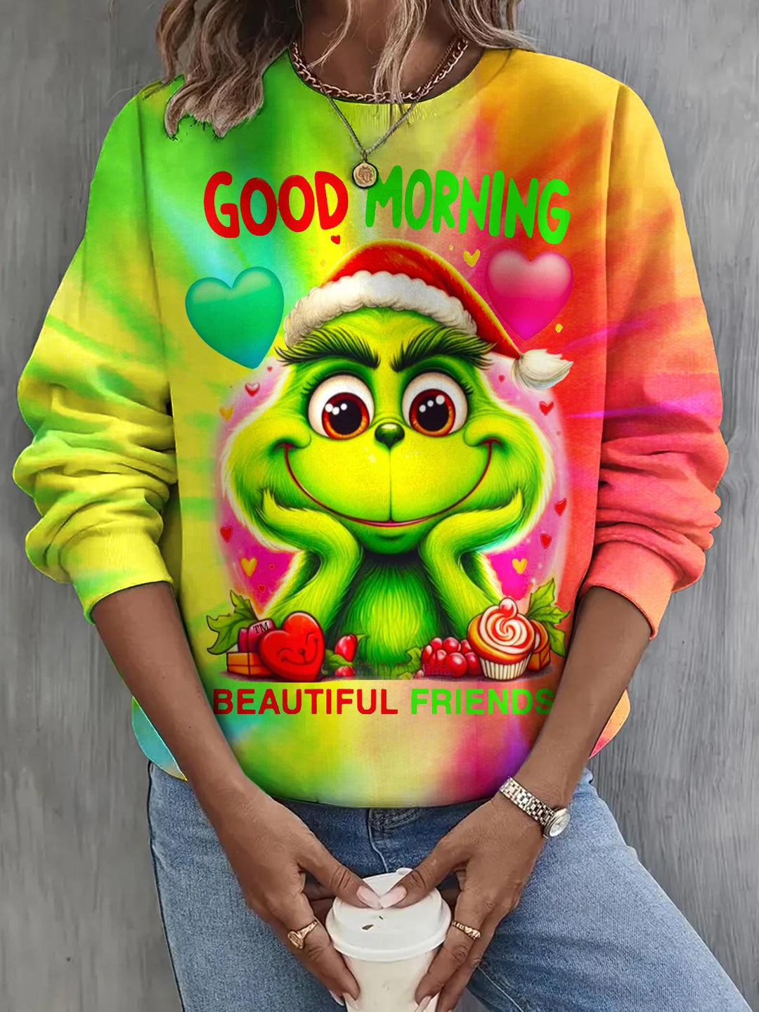 Grinch Retro Stripes Printed Long Sleeve Casual Top