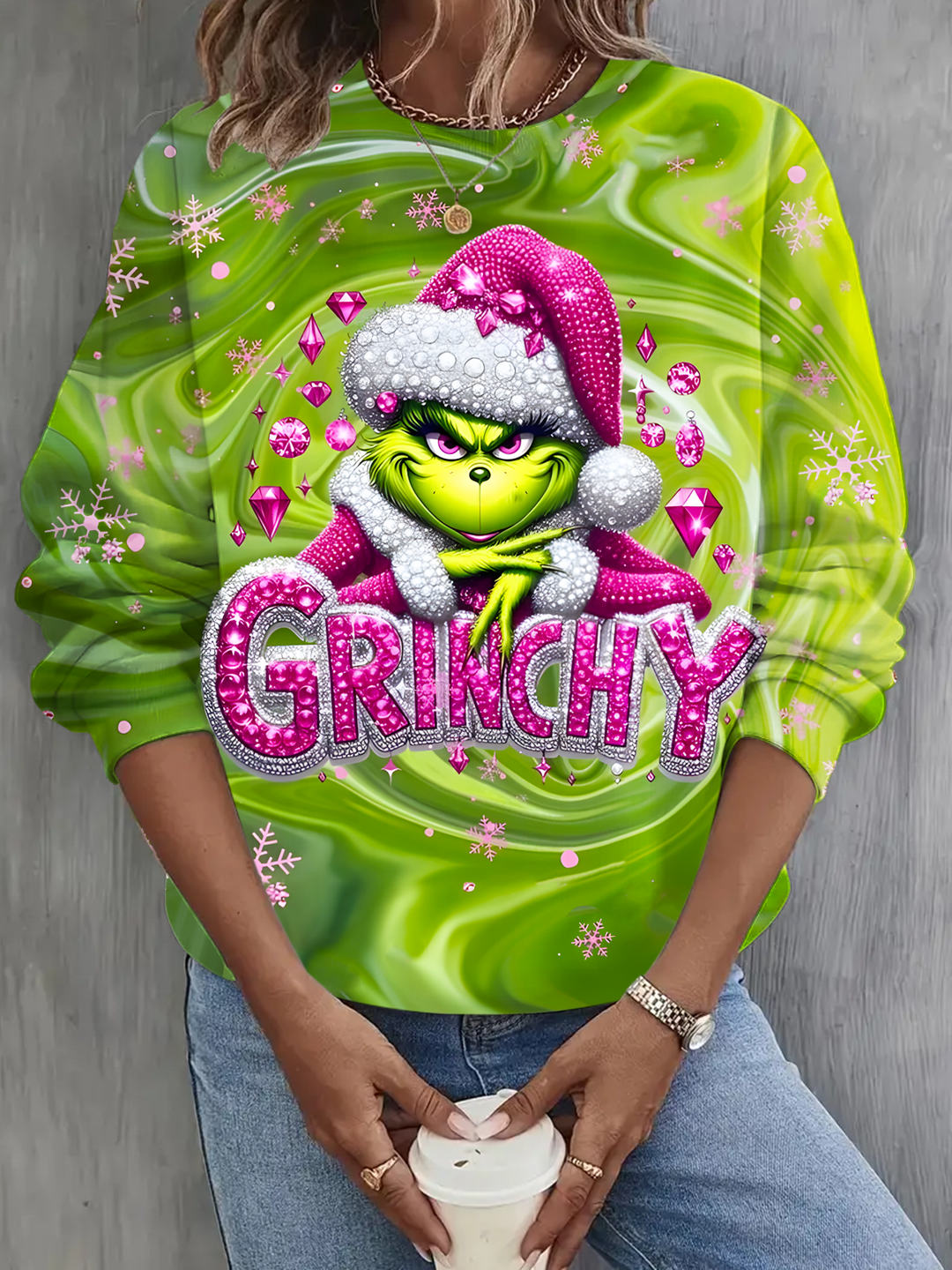 Fun Winter Christmas Grinch Printed Long Sleeve Casual Top