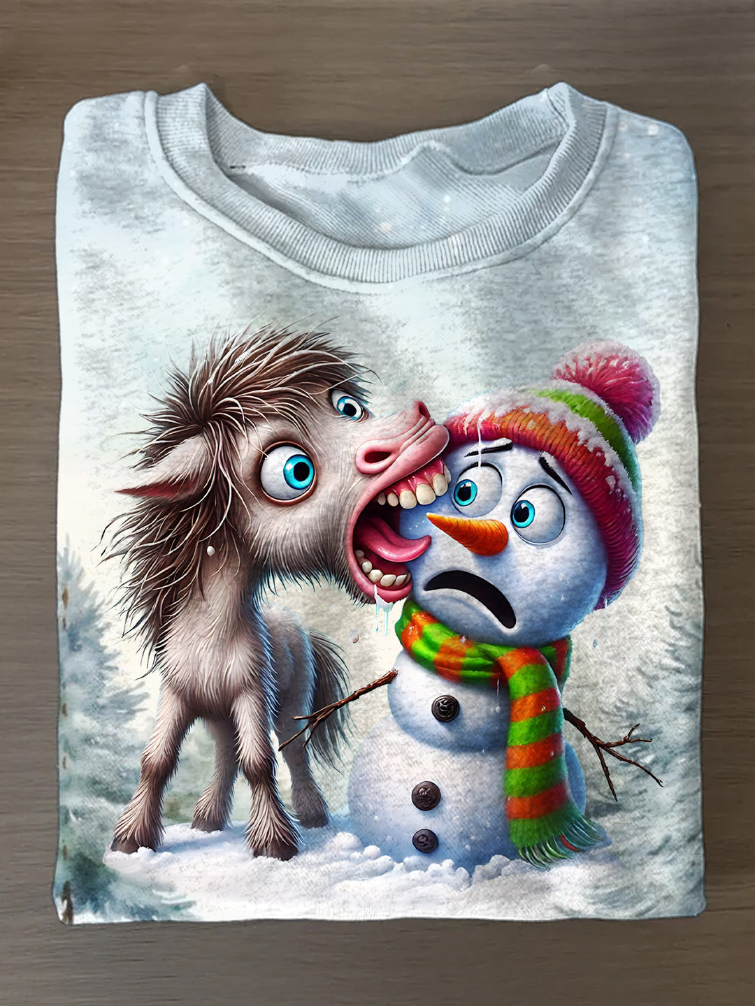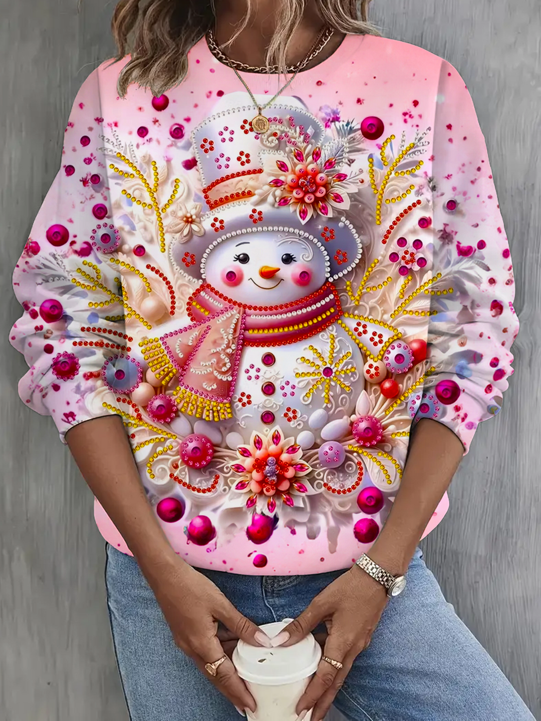 Fun Pink Christmas Snowman Printed Long Sleeve Casual Top