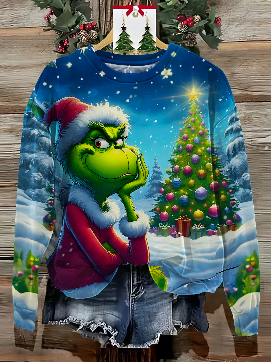 Christmas Grinch Christmas Tree Long Sleeve Casual Top