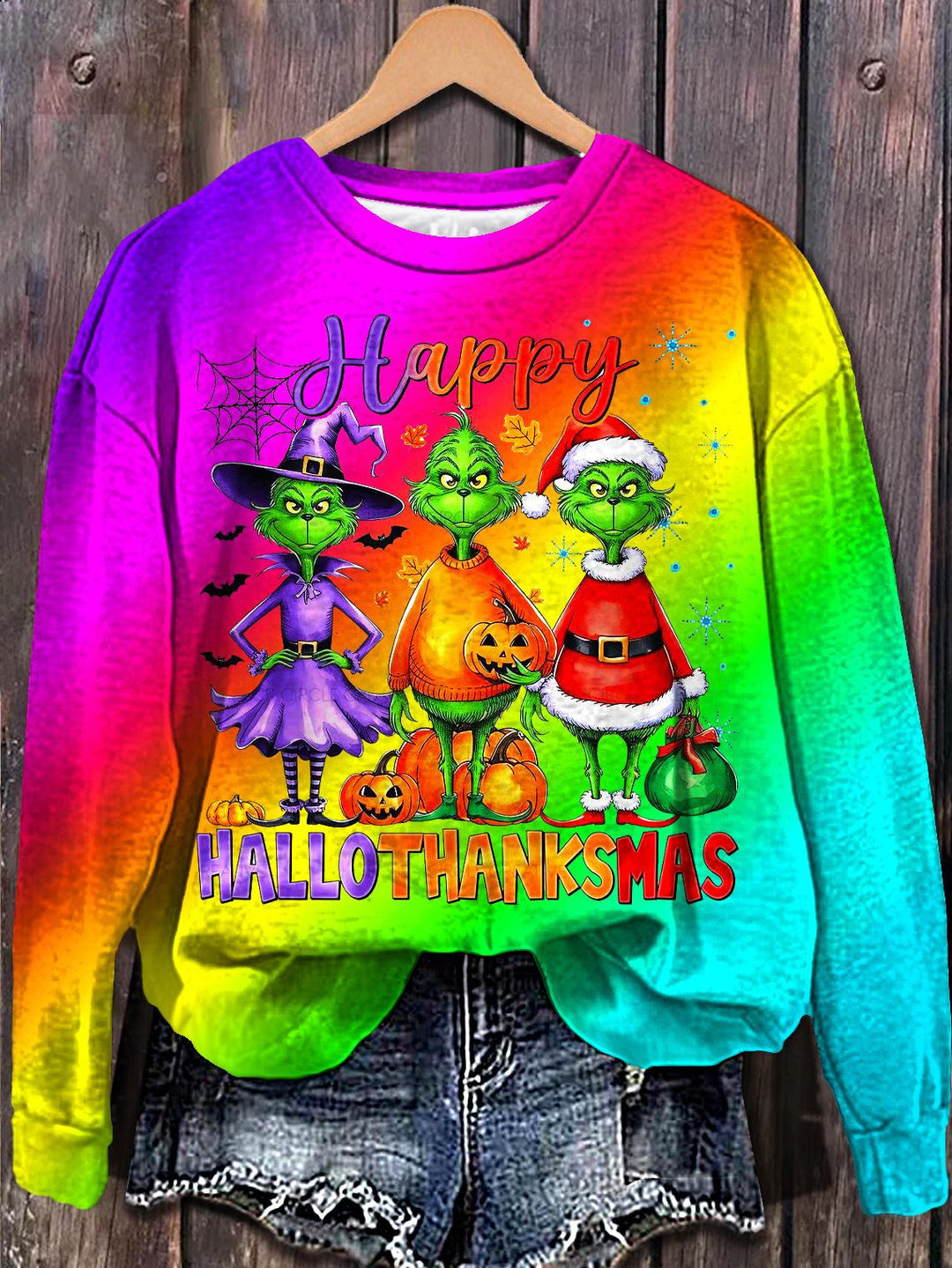 Christmas And Halloween Grinch Printed Long Sleeve Casual Top