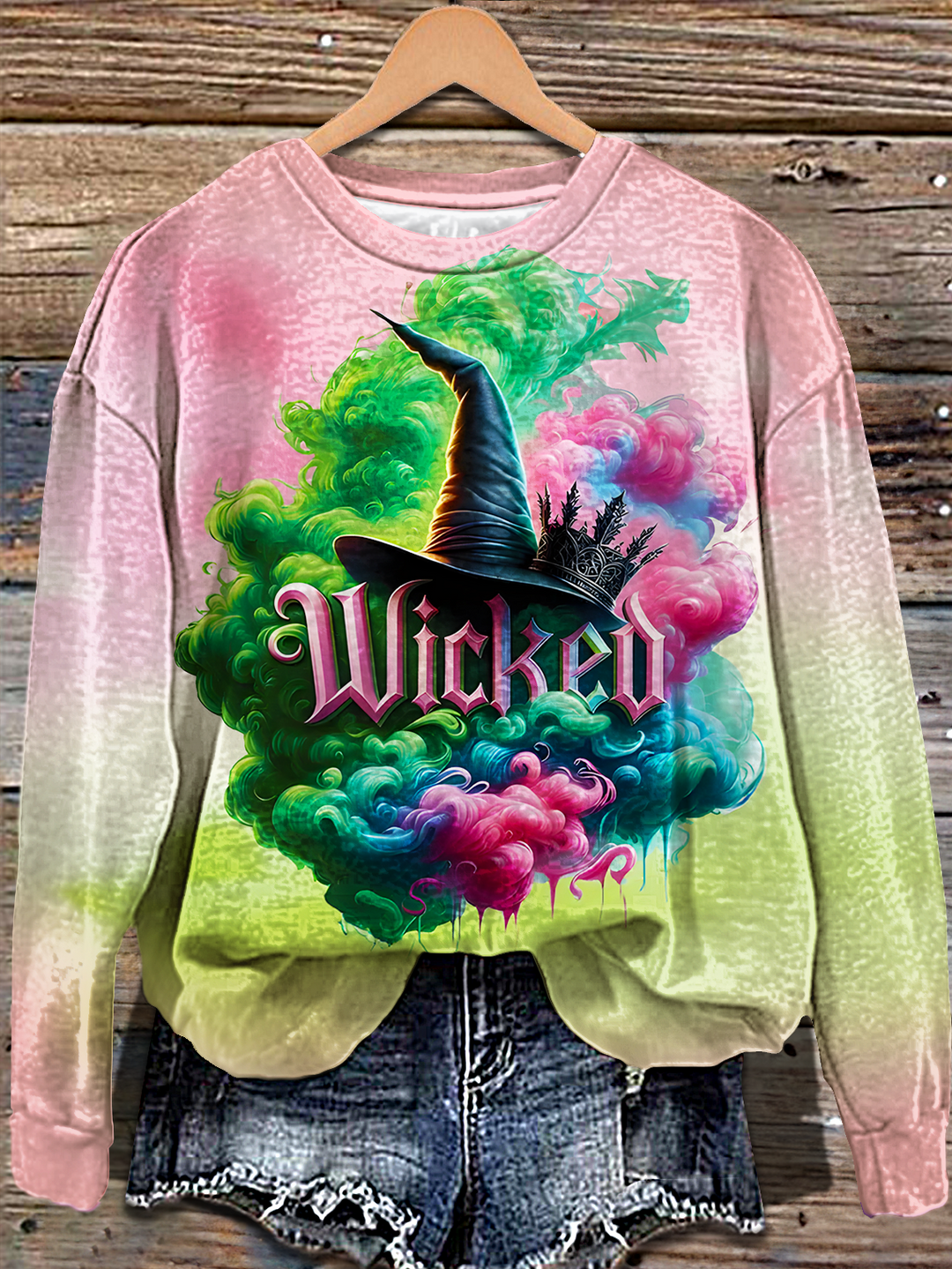 Witch Pink And Green Printed Long Sleeve Casual Top