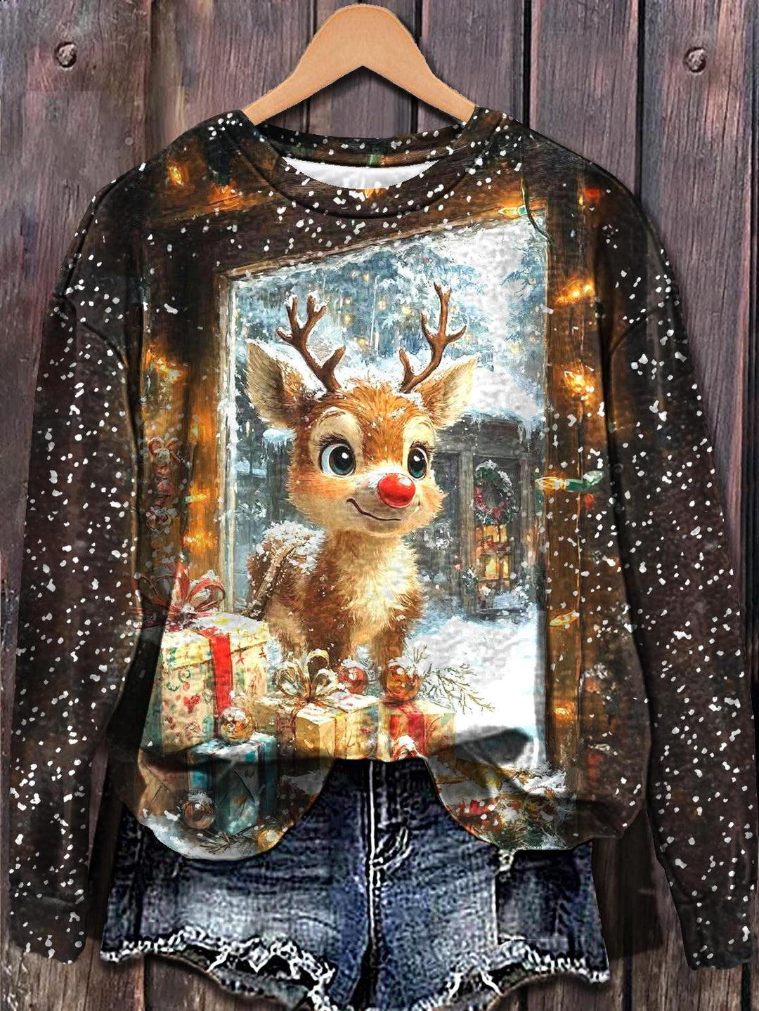 Retro Christmas Reindeer Long Sleeve Casual Top