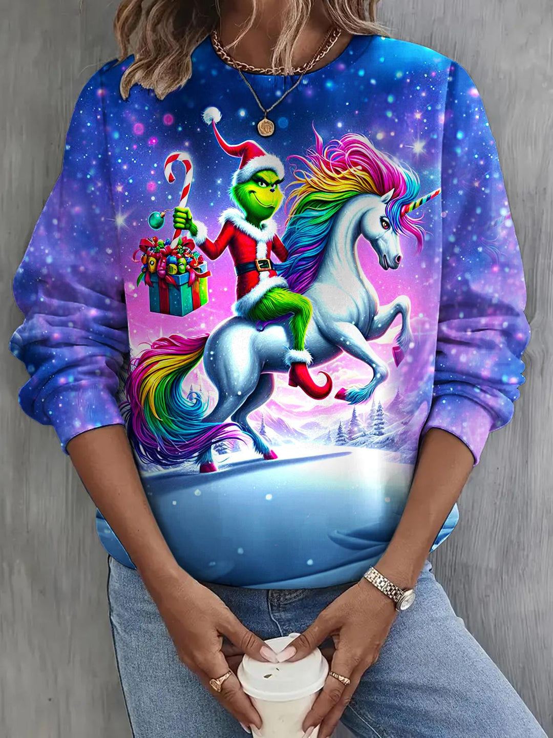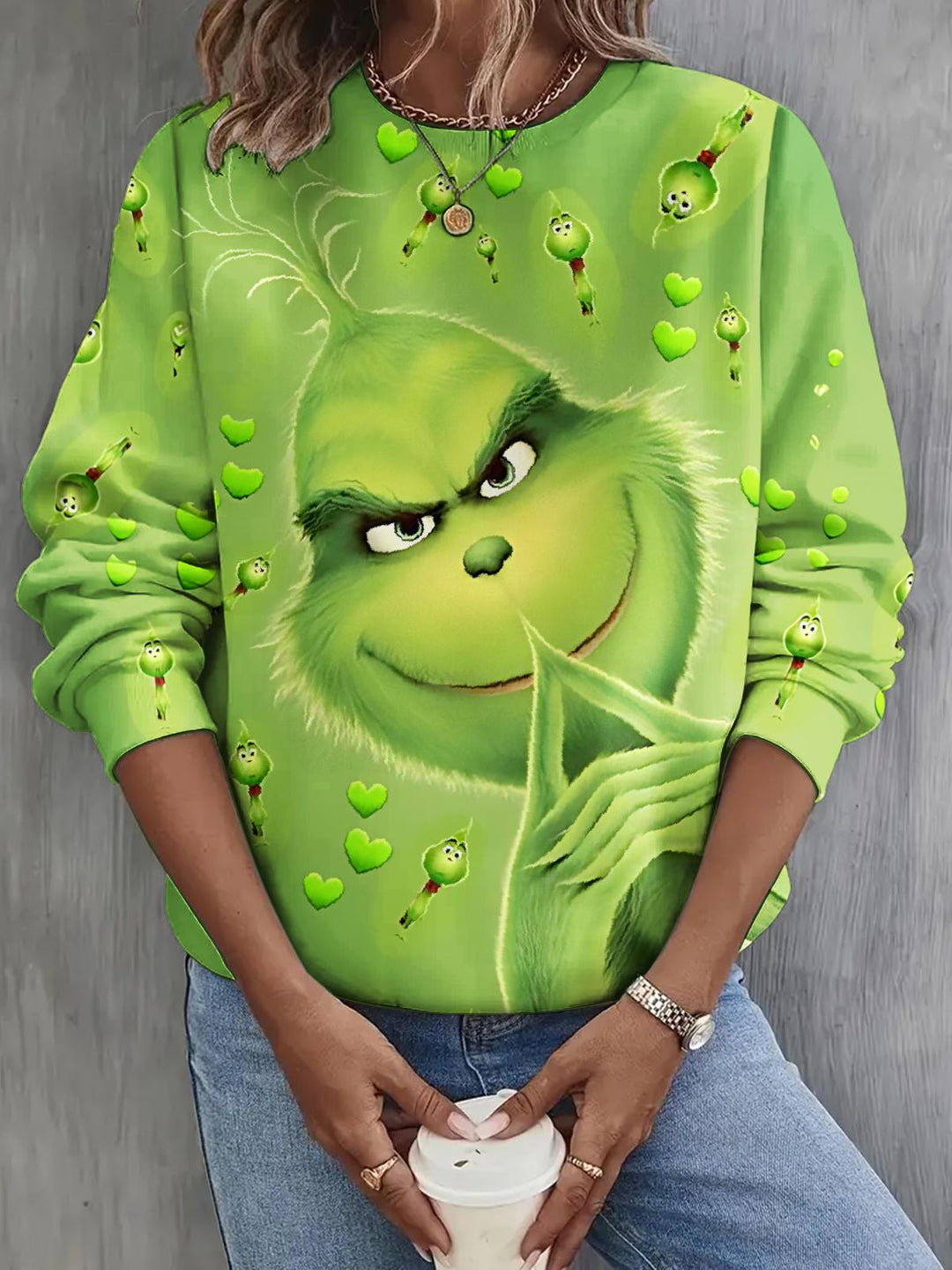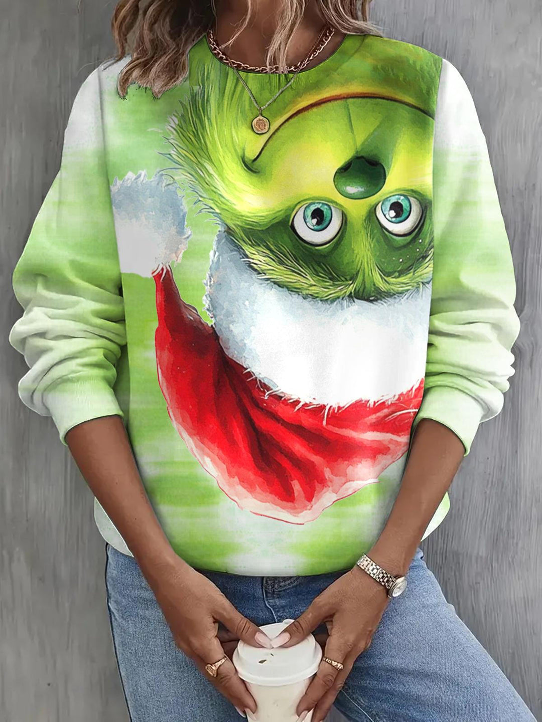 Women's A Green Monster's Christmas Round Neck Long Sleeve Top