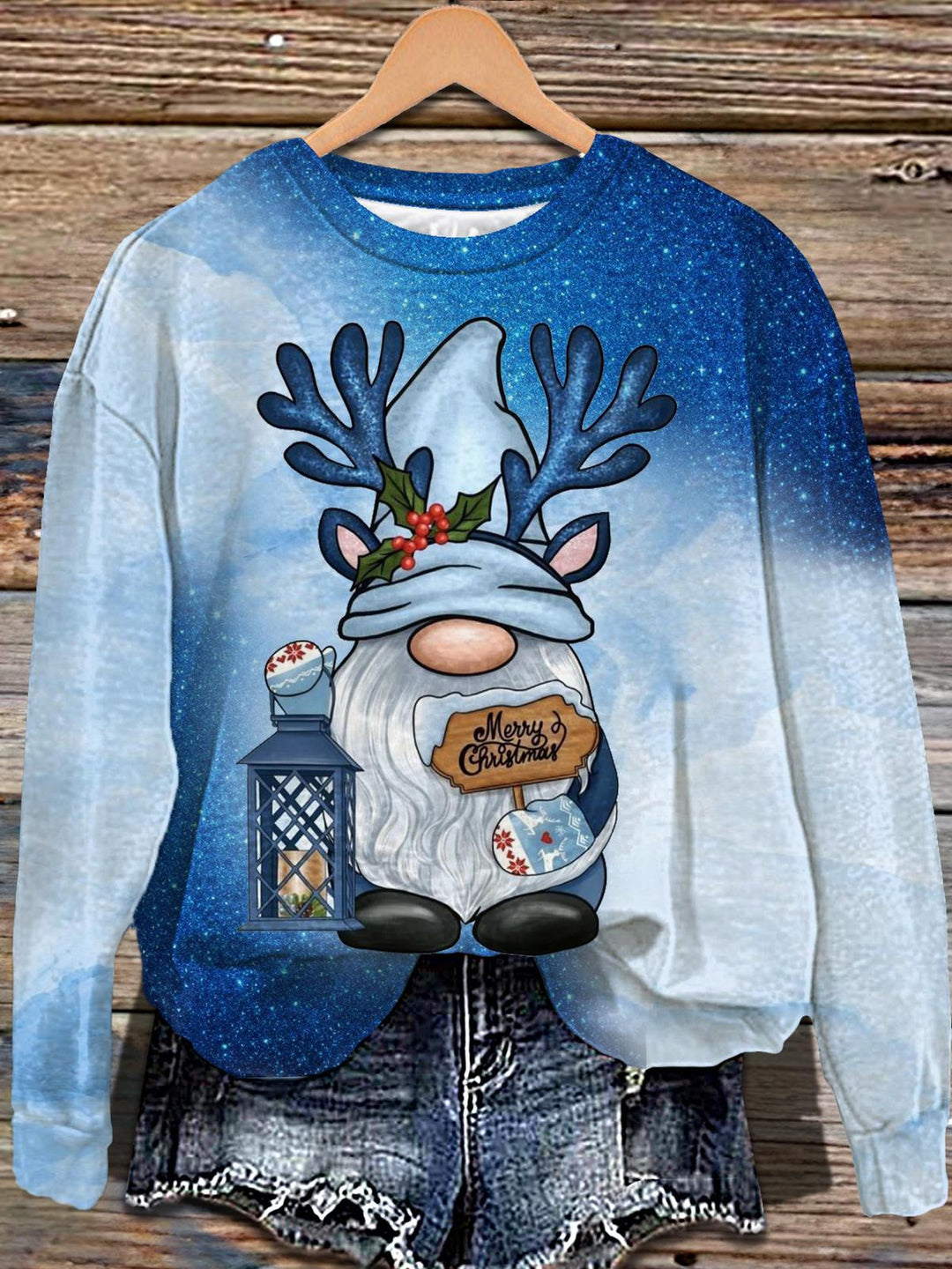 Women's Gnome And Reindeer Round Neck Long Sleeve Top