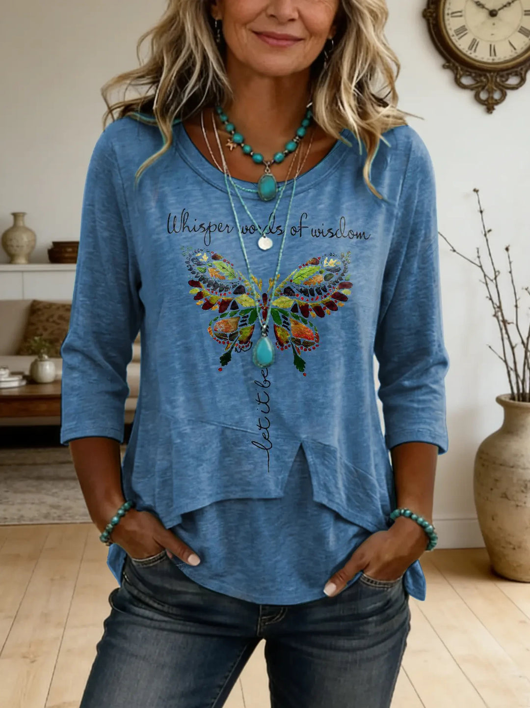 Women's Retro Hippie-Style Butterfly Art Print Casual T-Shirt
