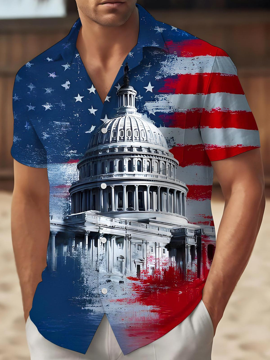 Capitol Building USA Flag Independence Day Men's Pocket Short Sleeve Shirts