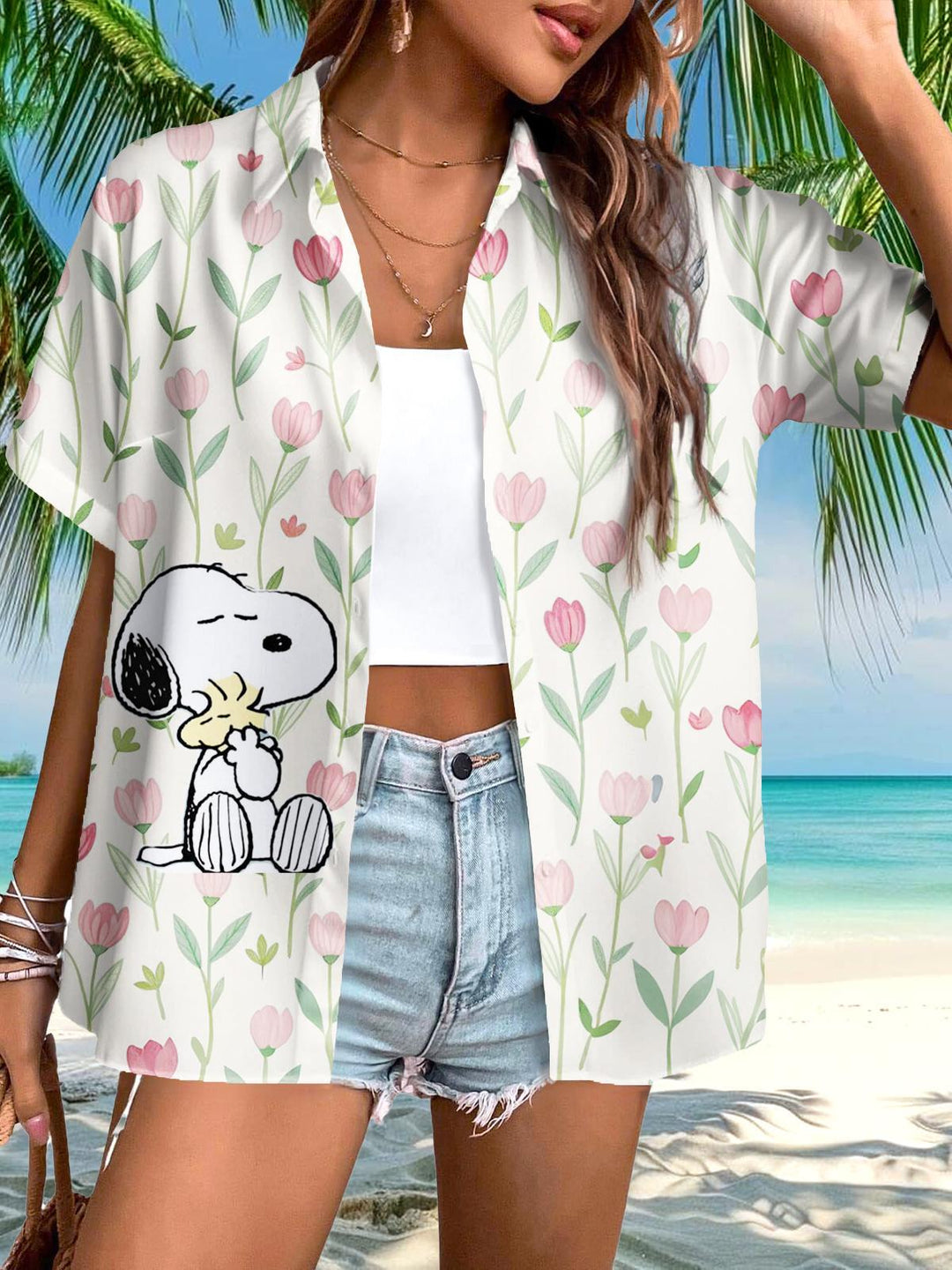 Spring Tulip Flower Snoopy Lar Short Sleeve Shirt