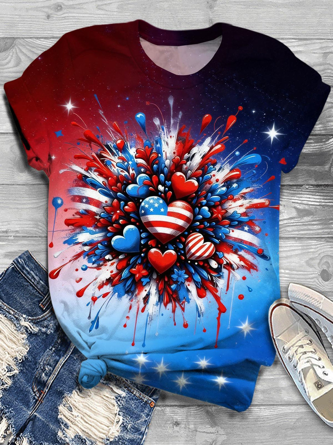 Women's Independence Day Love Round Neck Short Sleeve T-shirt