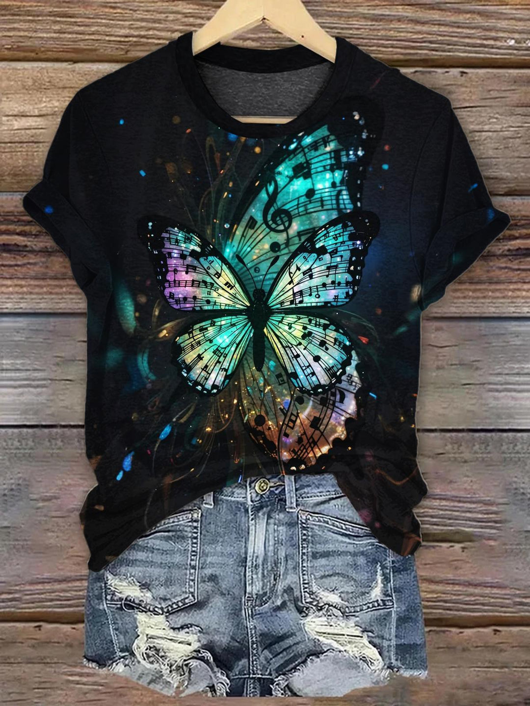Women's Colorful Butterfly Round Neck Short-sleeved T-shirt