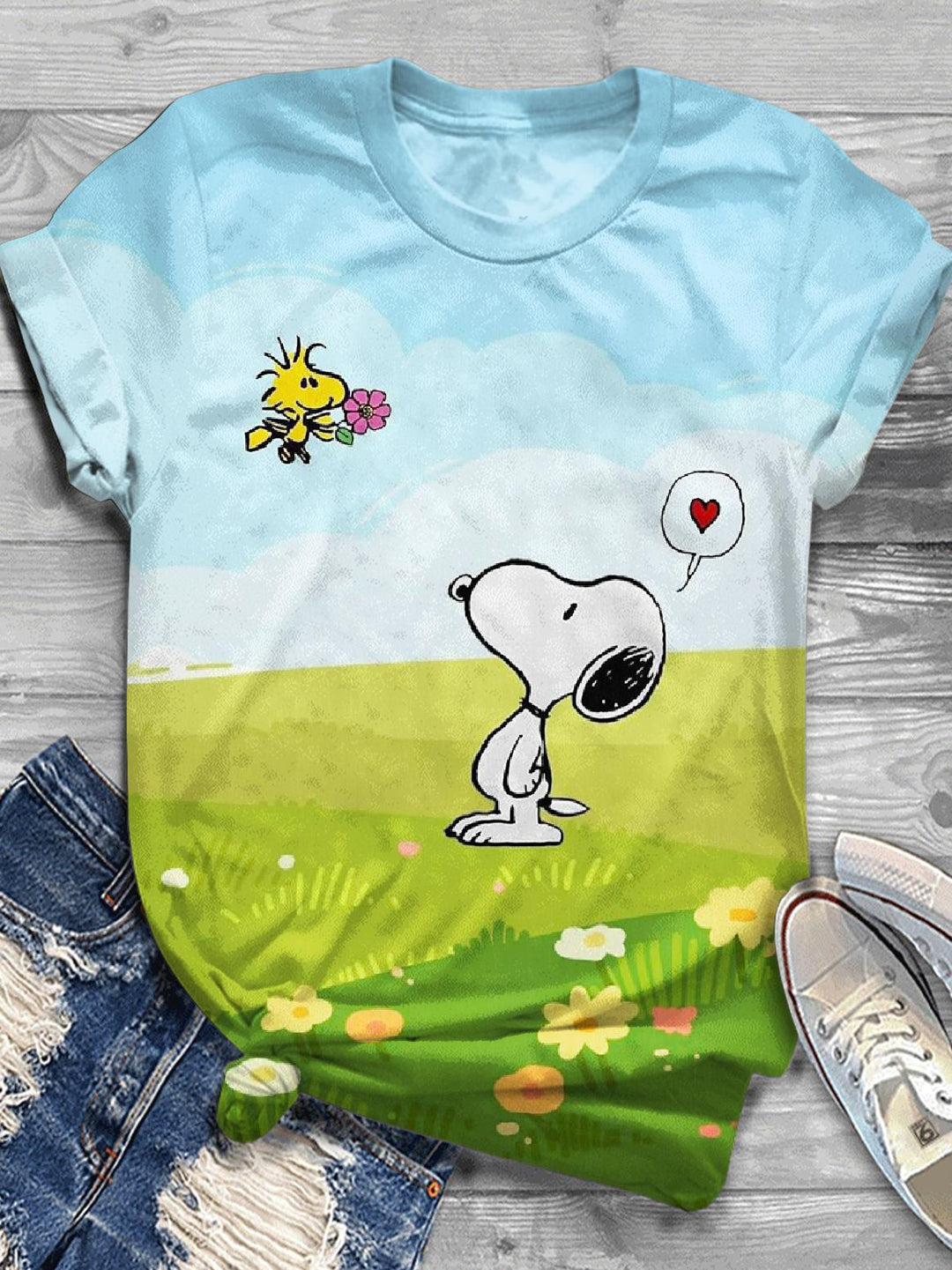 Snoopy Spring Outing Crew Neck T-shirt