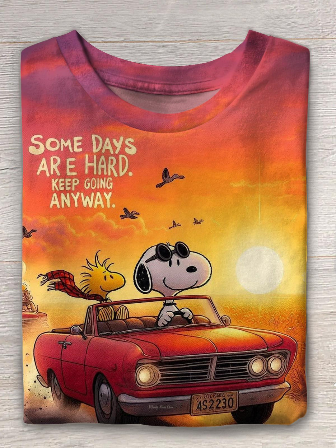 Women's Sunset Driving Snoopy Crewneck Short-sleeved T-shirt