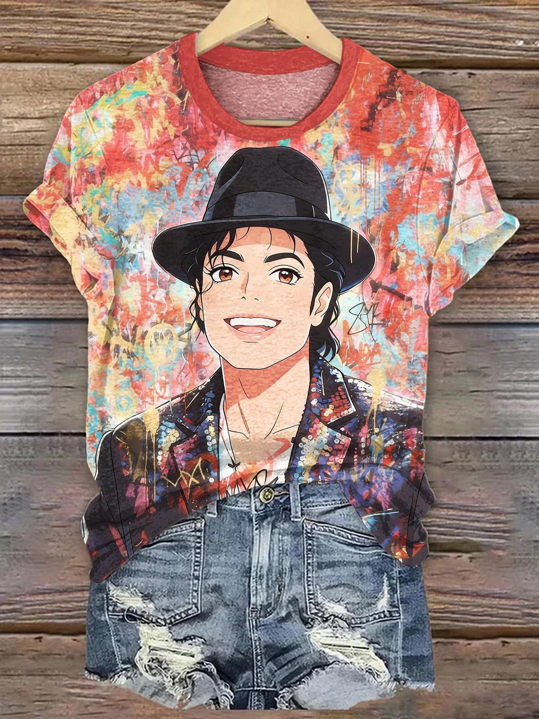 Women's Nostalgic Mike Jackson Round Neck Short Sleeve T-shirt