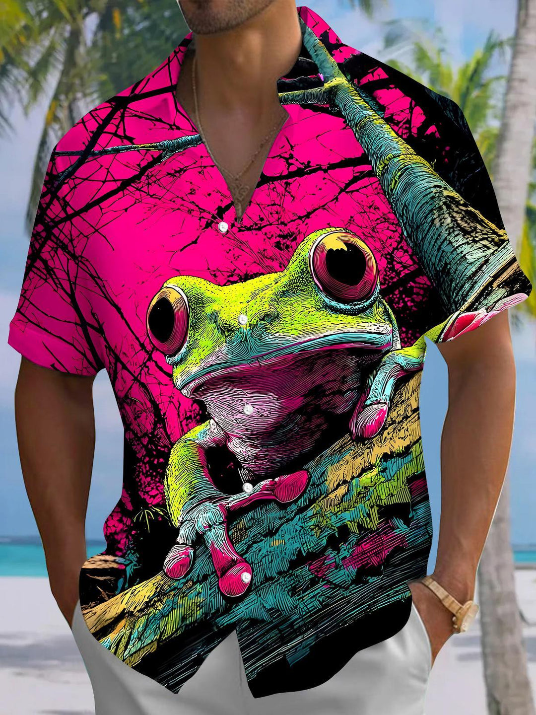 Seaside Holiday Parrot Lapel Short Sleeve Shirt