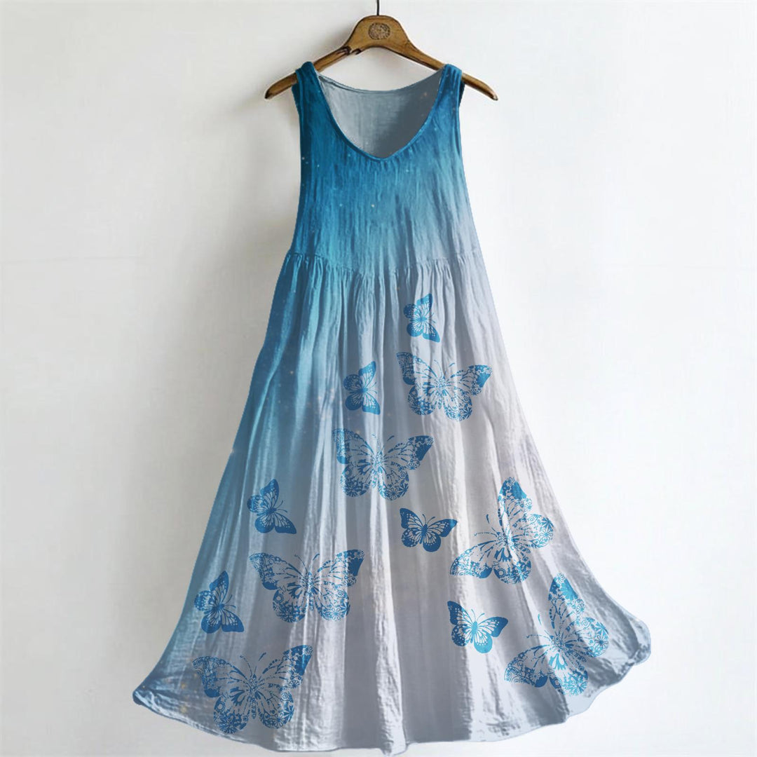 Women's Spring Gradient Butterfly V-neck Slub Sleeveless Dress