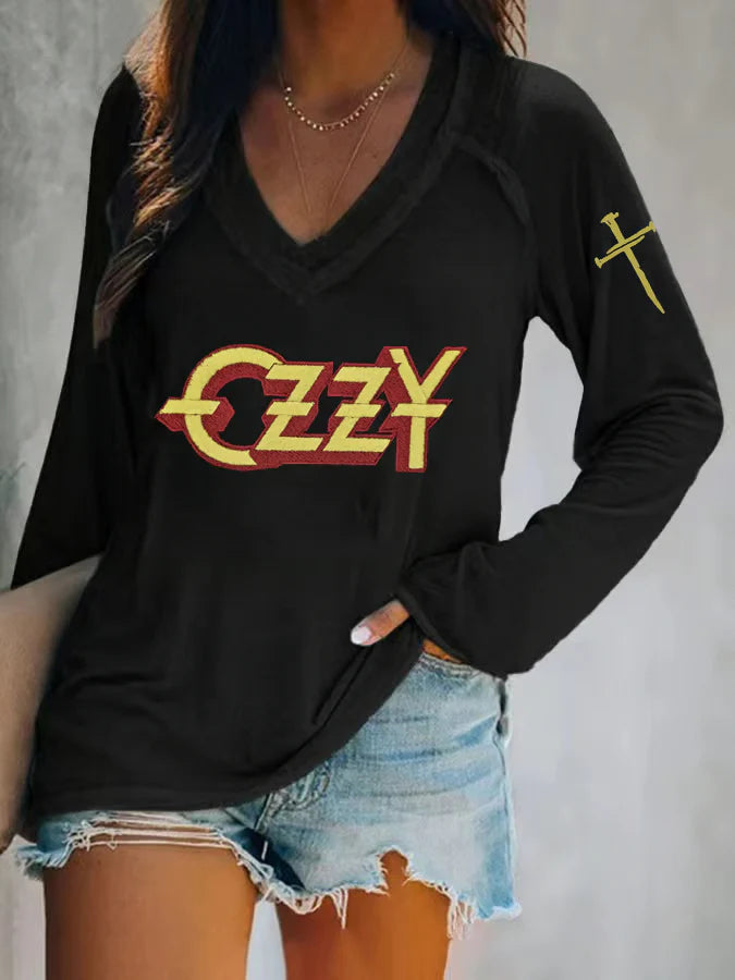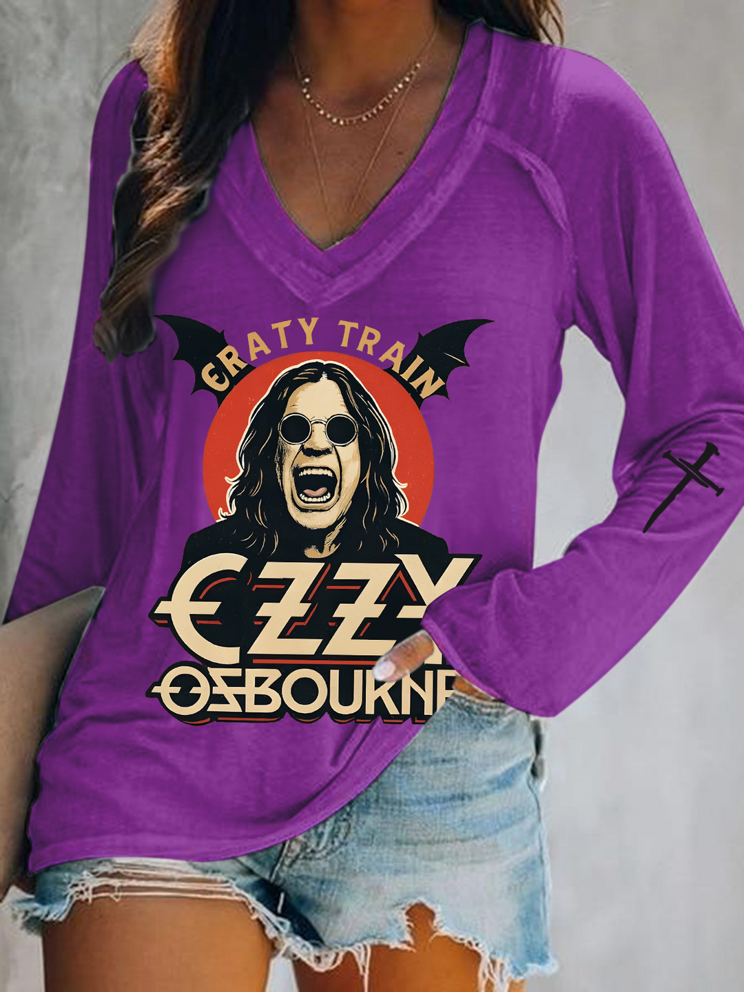 Ozzy Osbourne Print V-Neck Long Sleeve Top