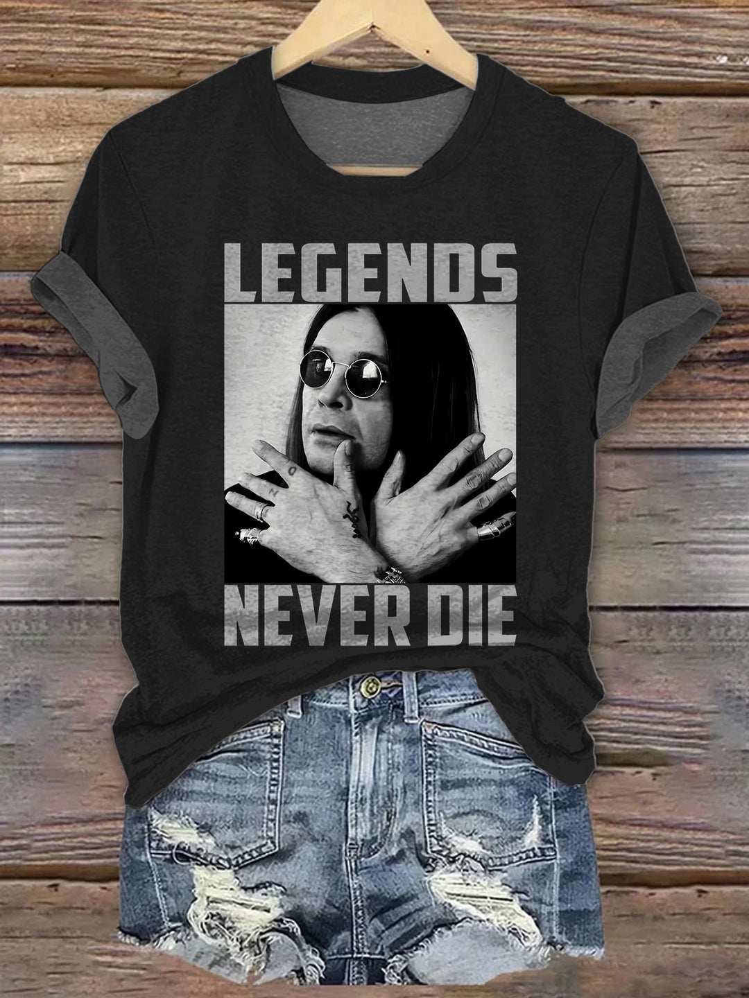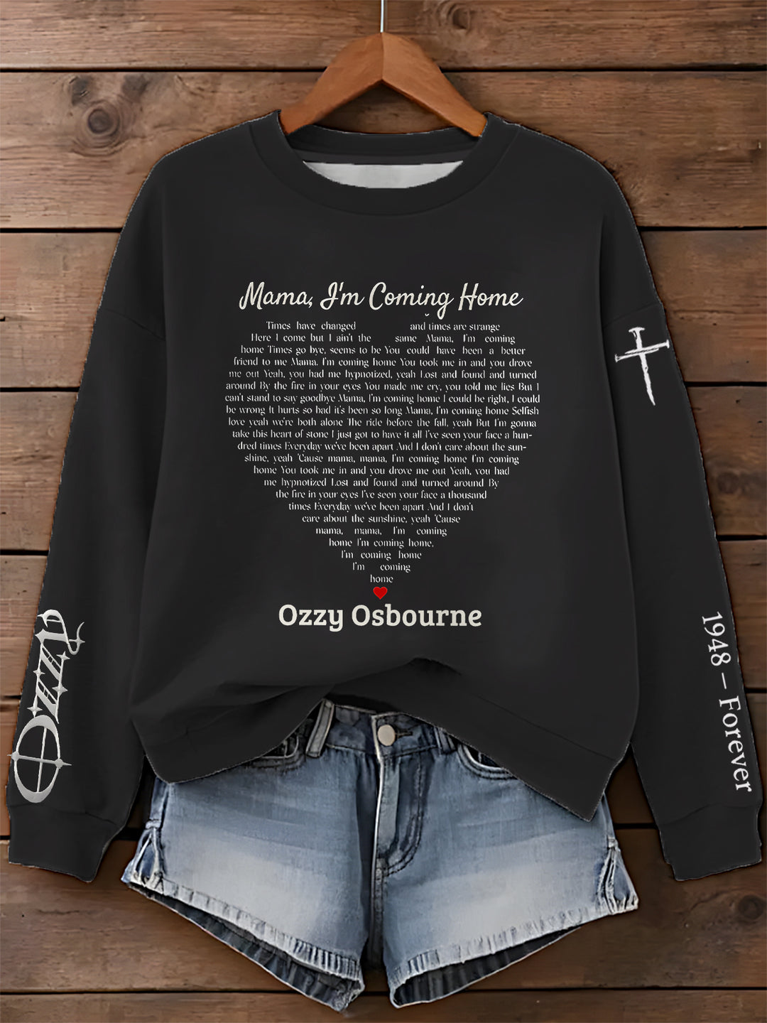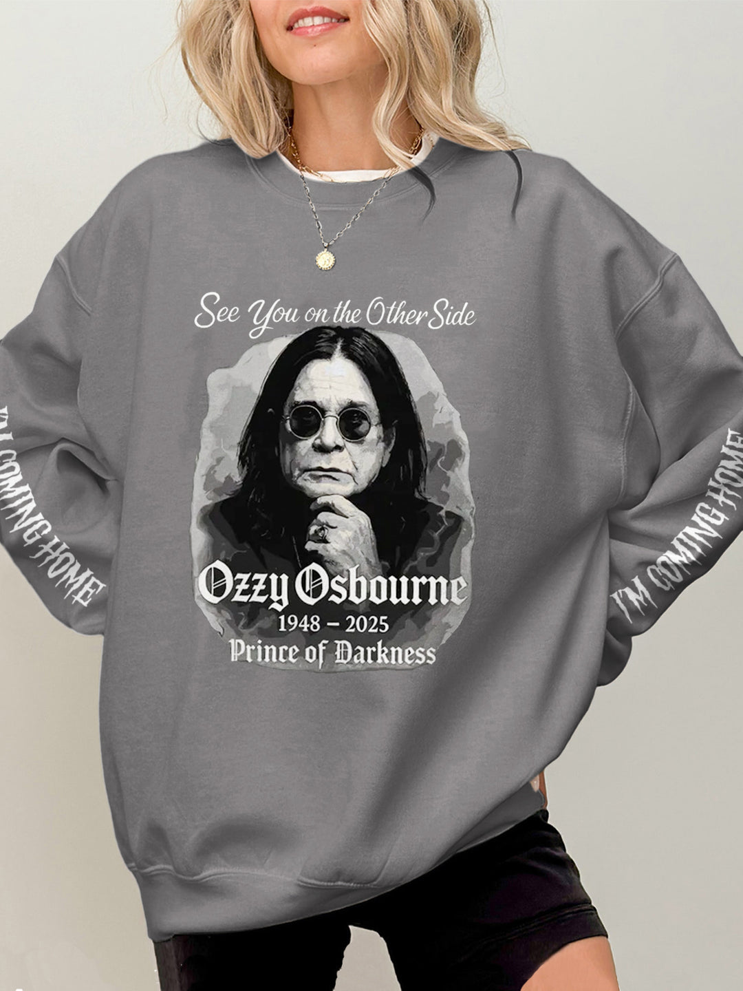 In Memory of Ozzy Osbourne Printed Long Sleeve Casual Top