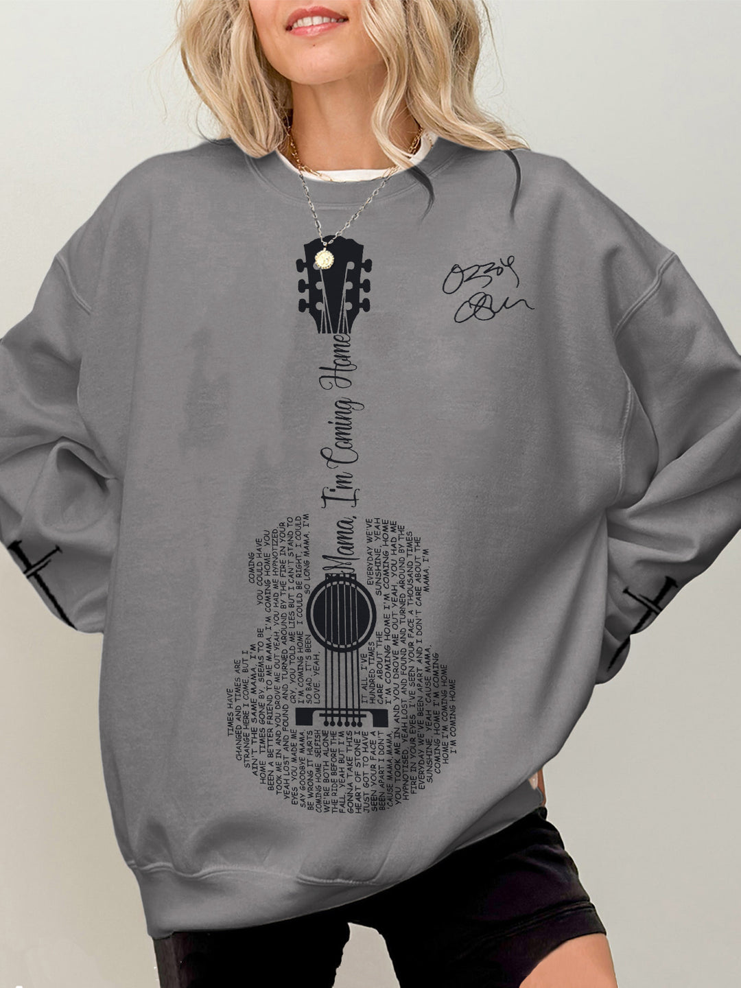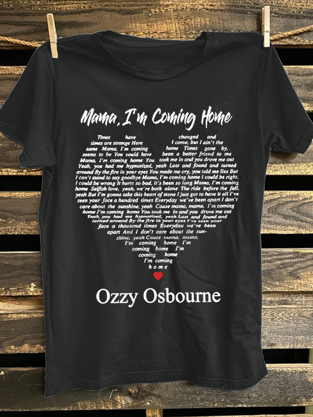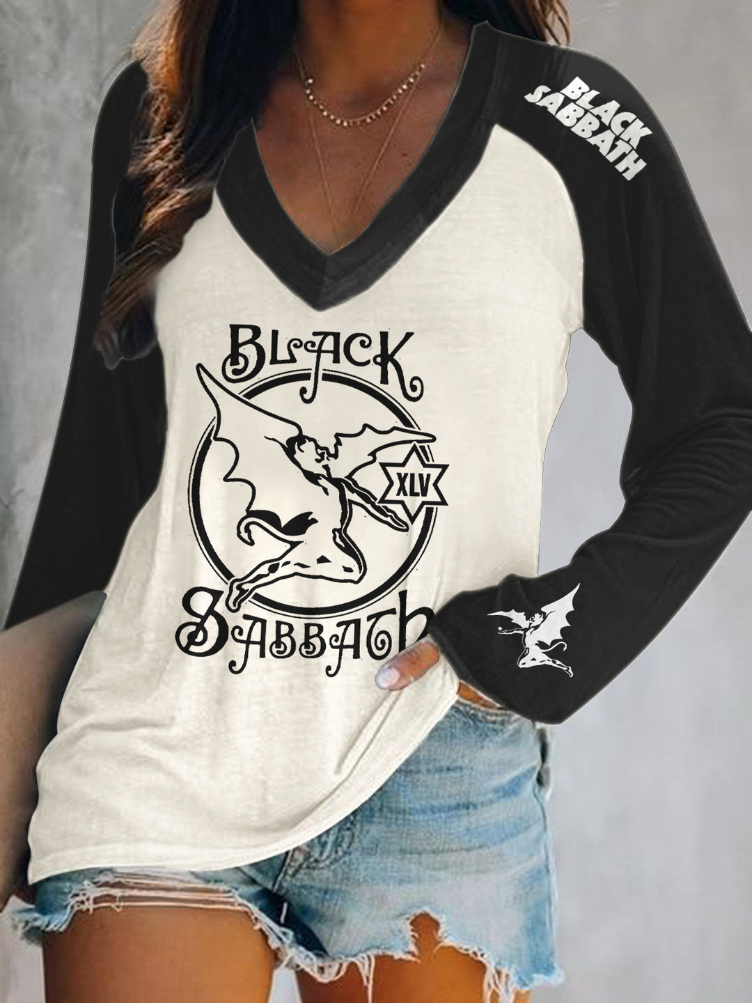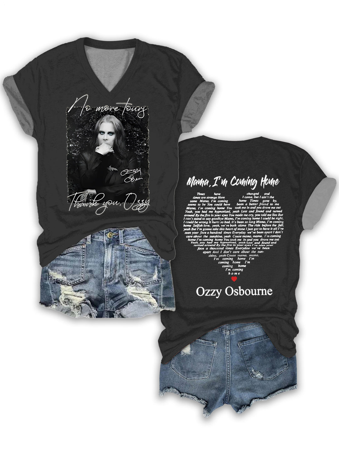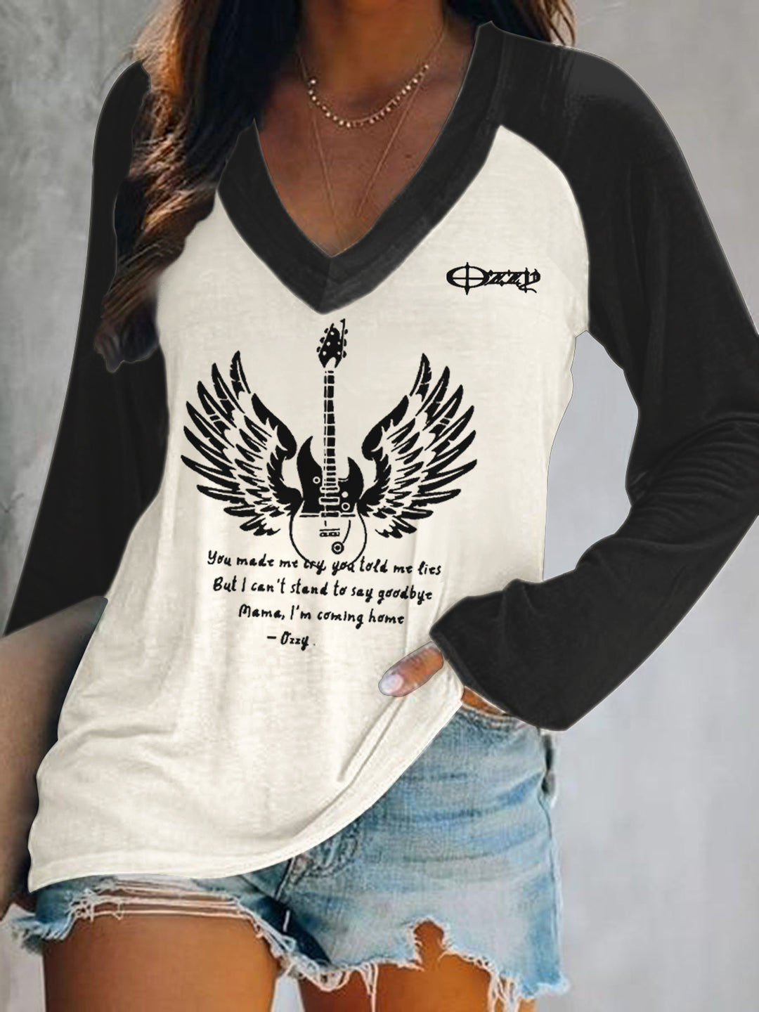 Trendy Ozzy Osbourne Mama I'm Coming Home Print V-Neck Long Sleeve Top