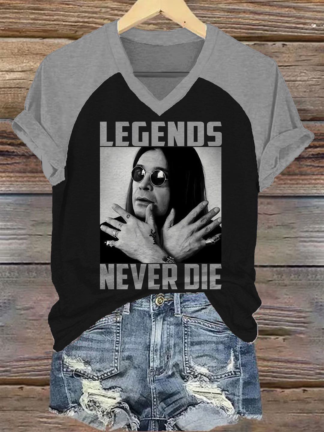 In Memory of Ozzy Osbourne Print V-Neck Long Sleeve Top