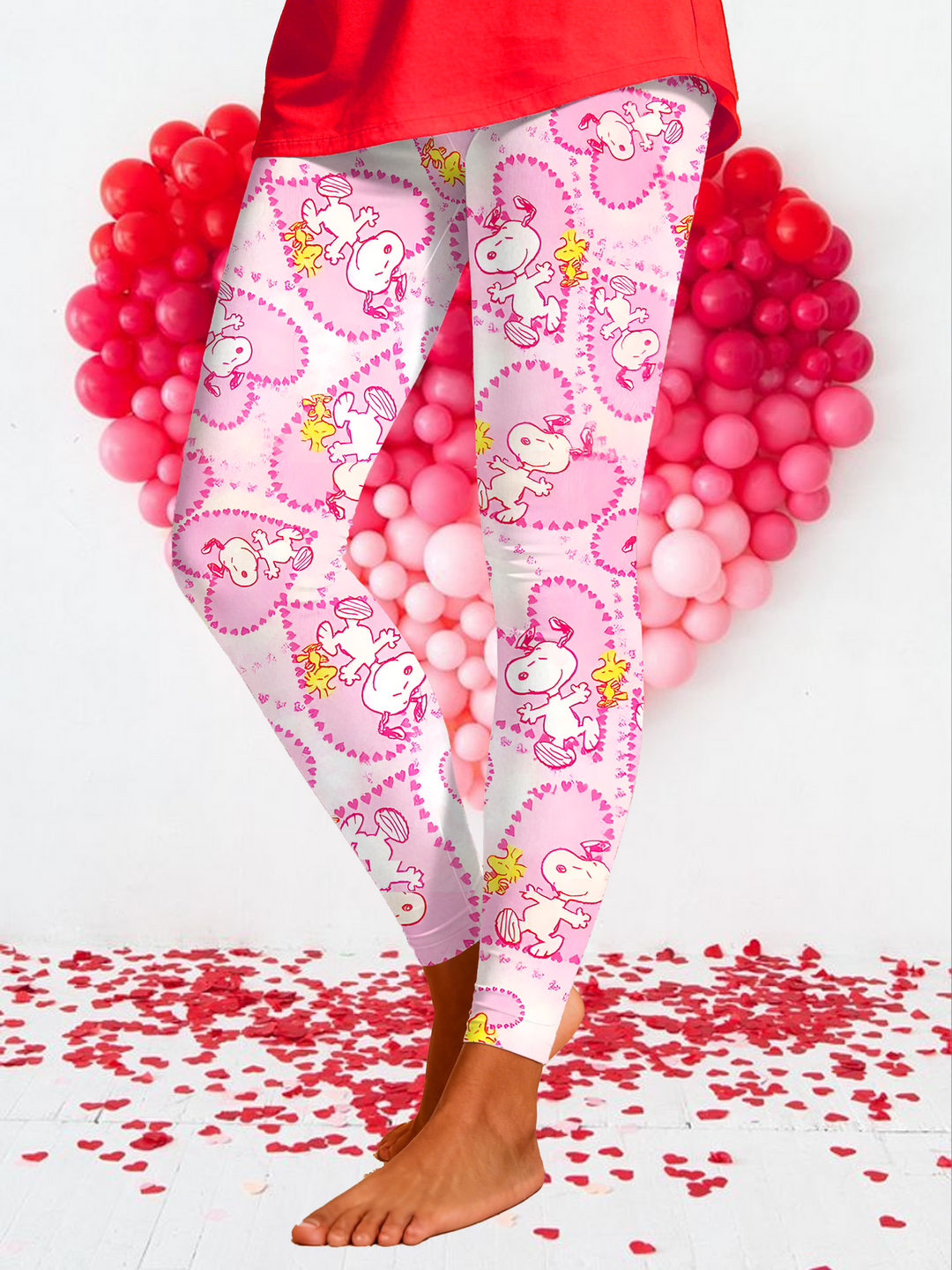 Happy Valentine's Day With Fun Cartoon Snoopy Print Leggings