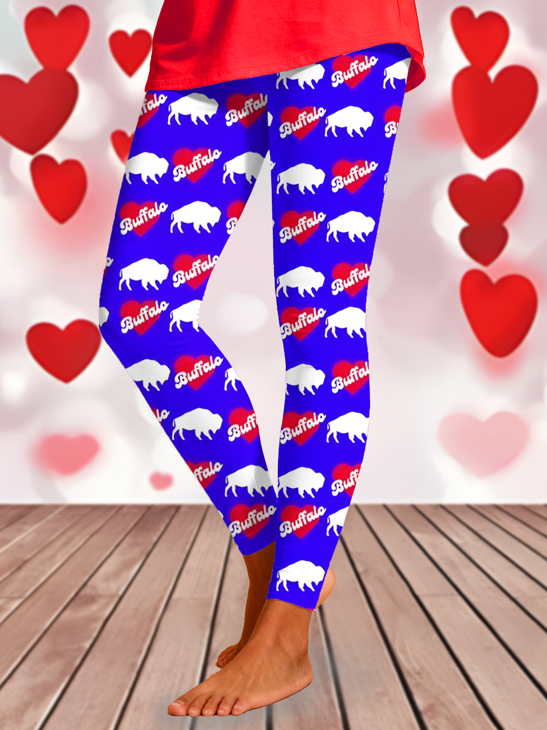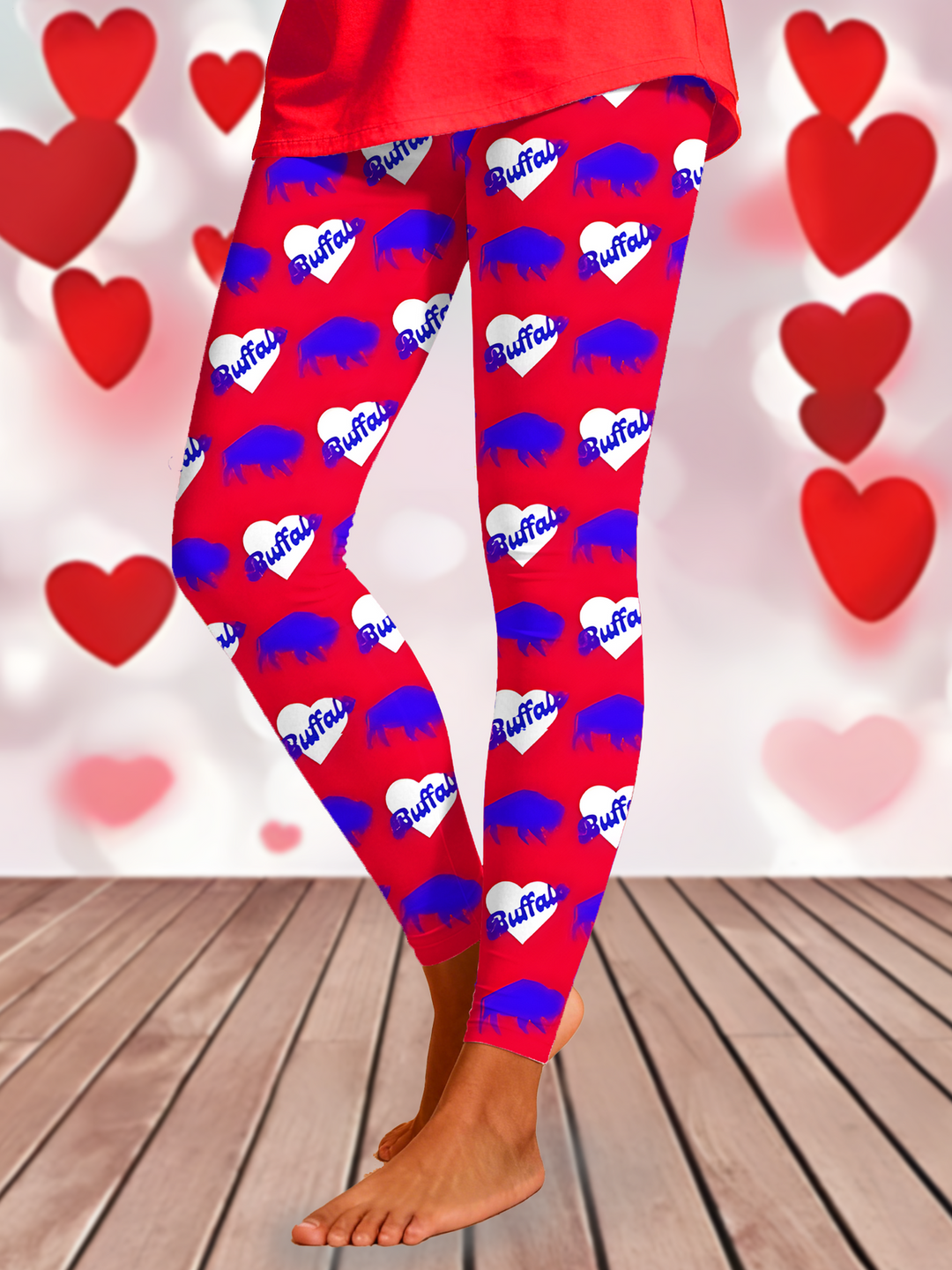 Buffalo Bills Love With White Heart on Red Print Leggings
