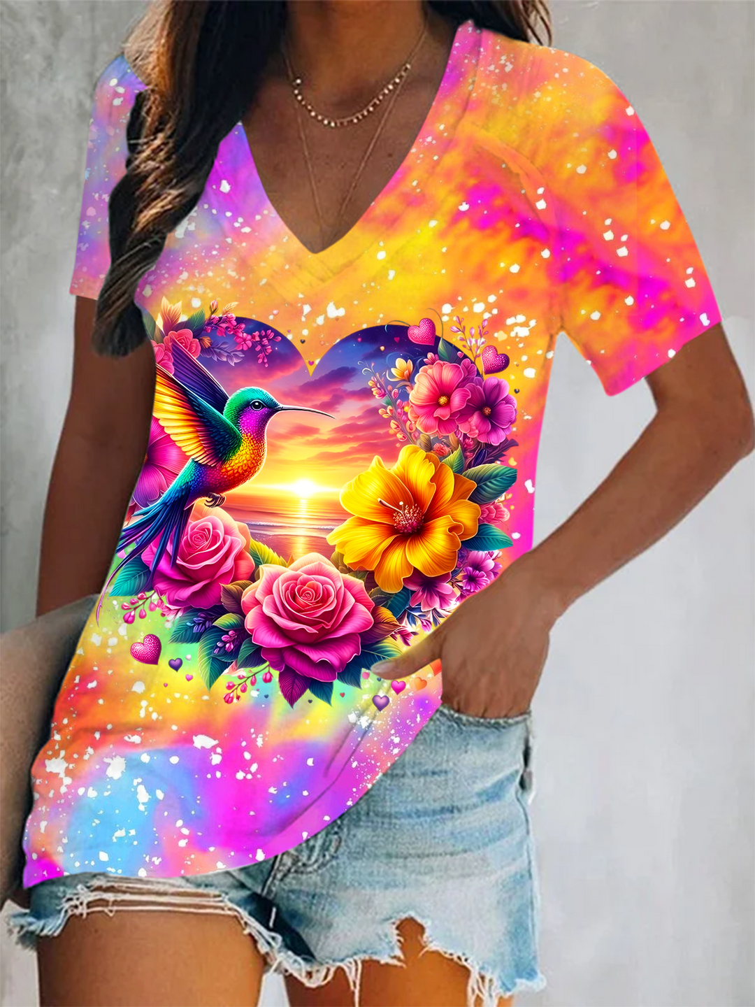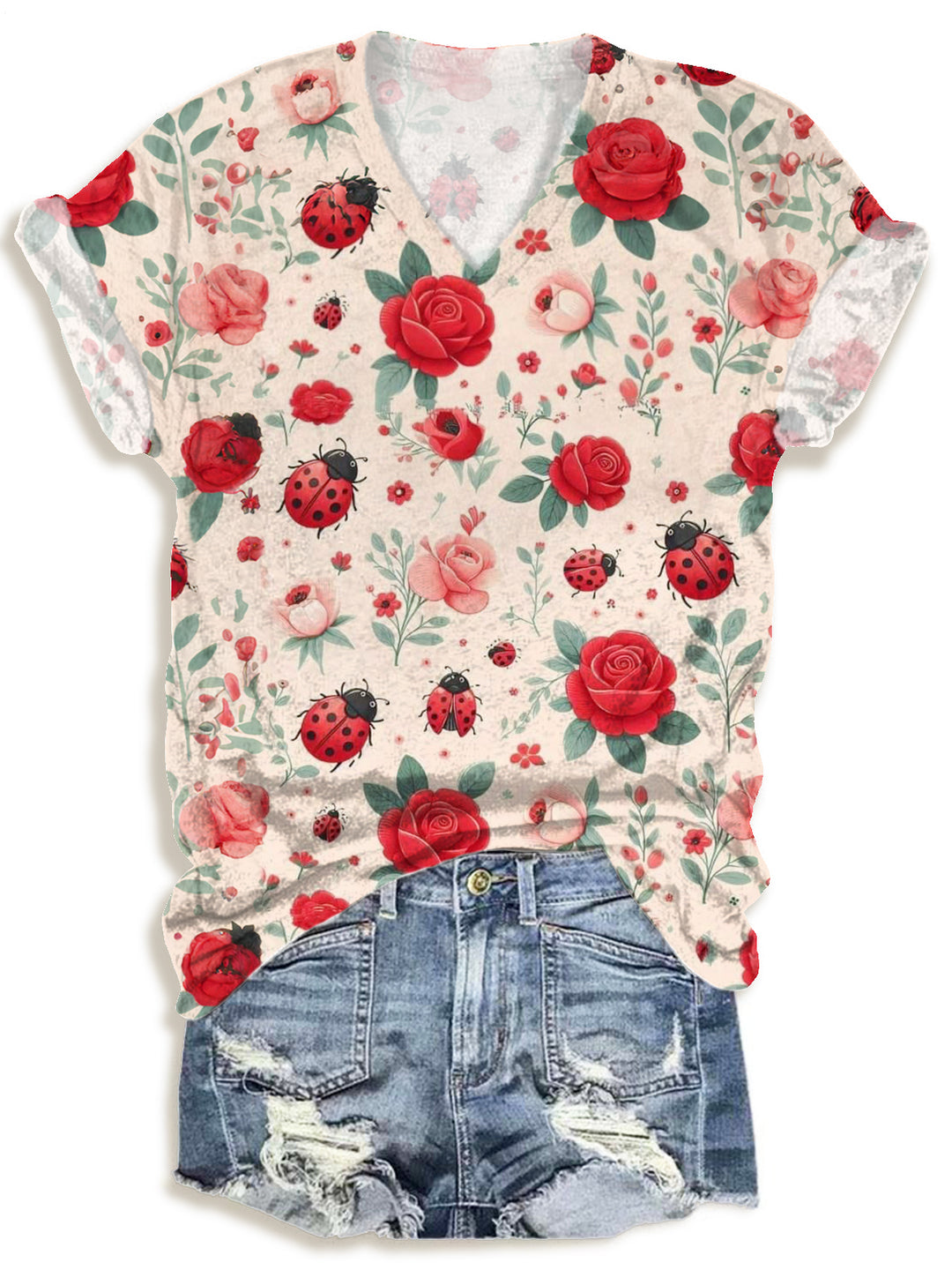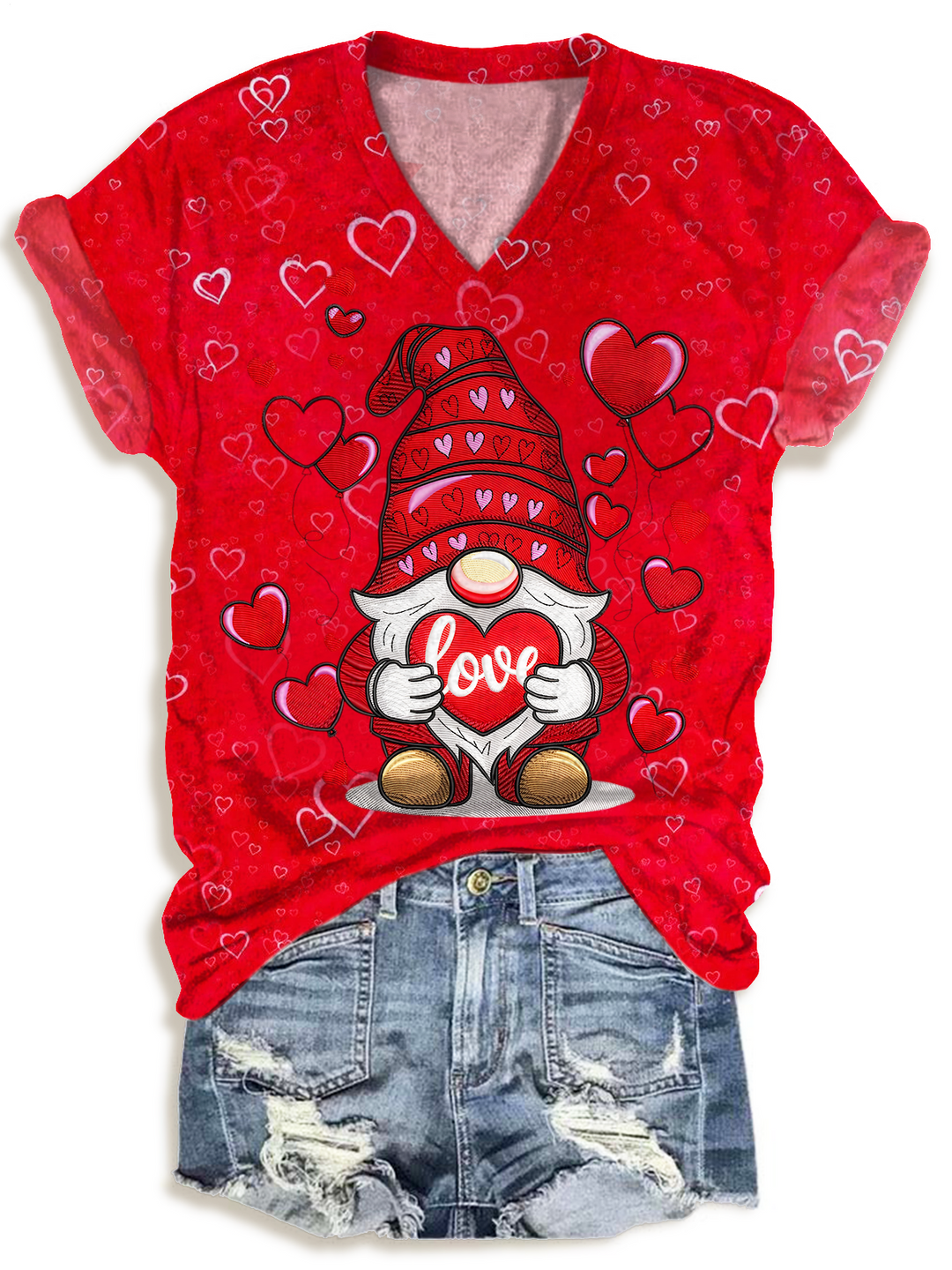Valentine's Day Cute Printed Crew Neck T-shirt