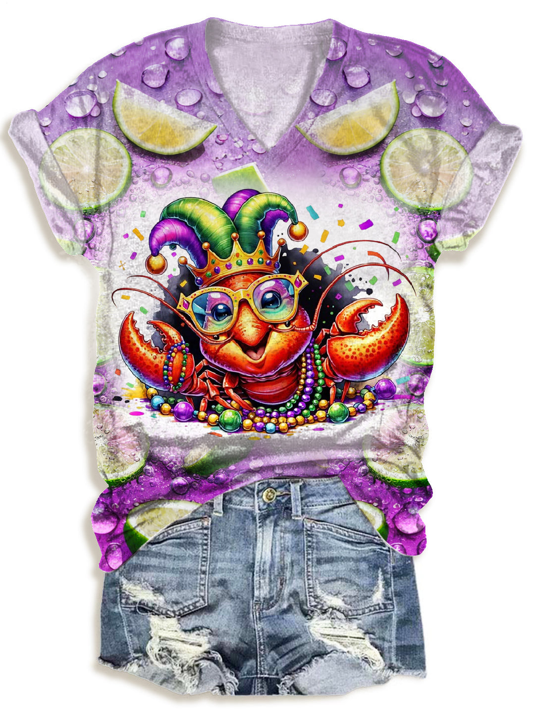 Mardi Gras Fun Lobster V-neck T-Shirt