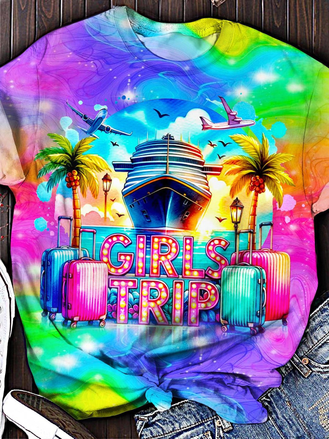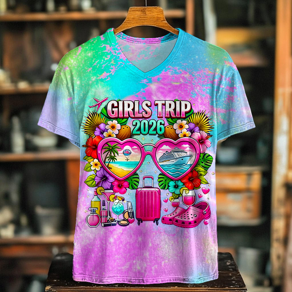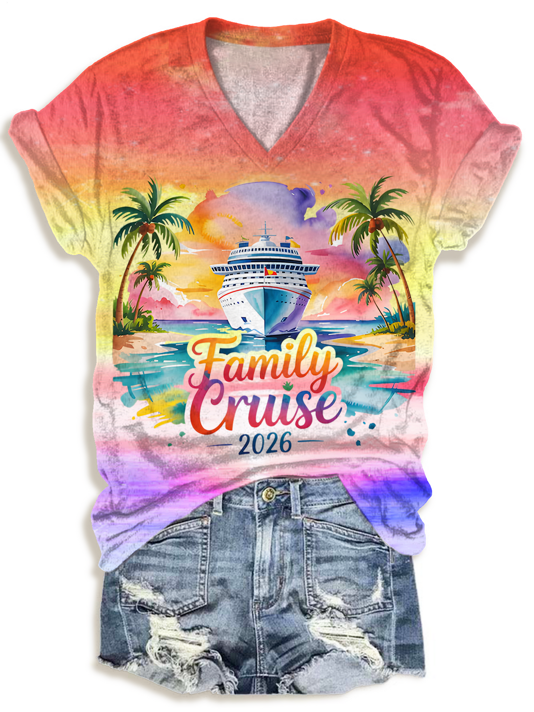 Watercolor Tie-dye Cruise Ship 2026 V-neck T-Shirt
